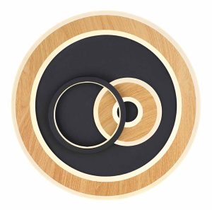 Lámpara de techo de alta tecnología negra/con aspecto de madera y construcción circular Globo Chessy
