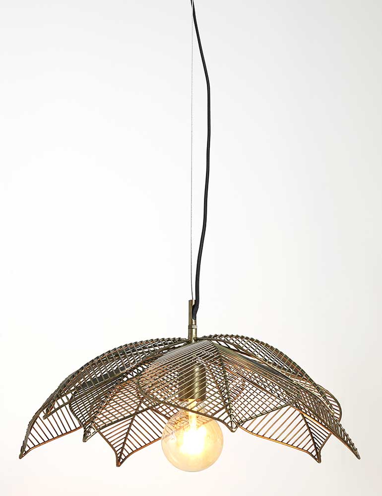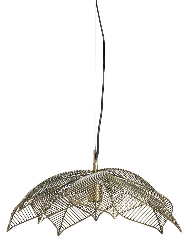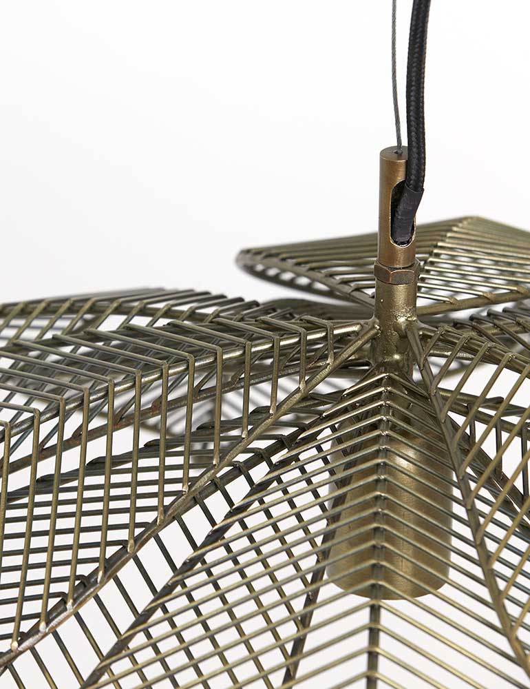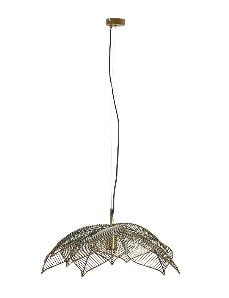 Esta preciosa lámpara colgante presenta una atractiva estructura metálica en la cual las hojas naturales se han llevado a un diseño geométrico sin perder la belleza de lo natural. Resulta perfecta para integrar en un salón de estilo romántico o shabby chic, combinada con muebles blancos decapados y textiles de tonalidades suaves.