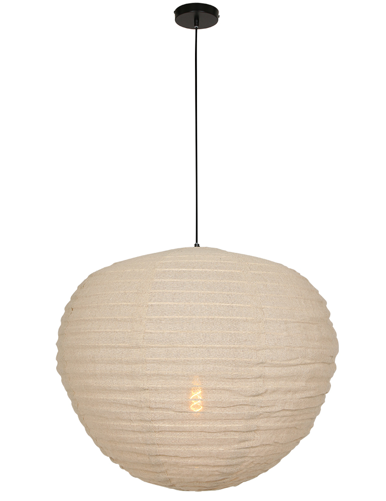 La lámpara colgante de la serie Anne Bangalore combina materiales naturales con un diseño elegante. La pantalla está hecha de lino y está sostenida por un marco de bambú. La lámpara tiene un casquillo E27 y es adecuada para fuentes de luz de hasta 40 vatios (no incluidas). La lámpara es regulable con un regulador externo y una fuente de luz regulable. Durante la instalación, la altura se puede ajustar de 80 cm a 220 cm. La pantalla tiene un diámetro de 70 cm y se puede montar con el lado convexo hacia arriba o hacia abajo.