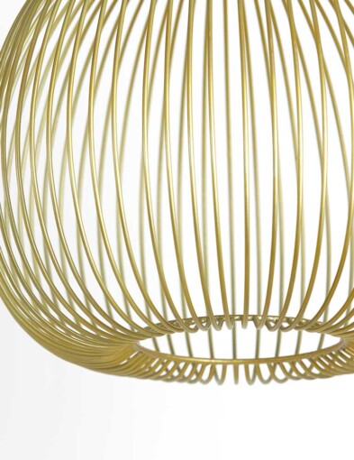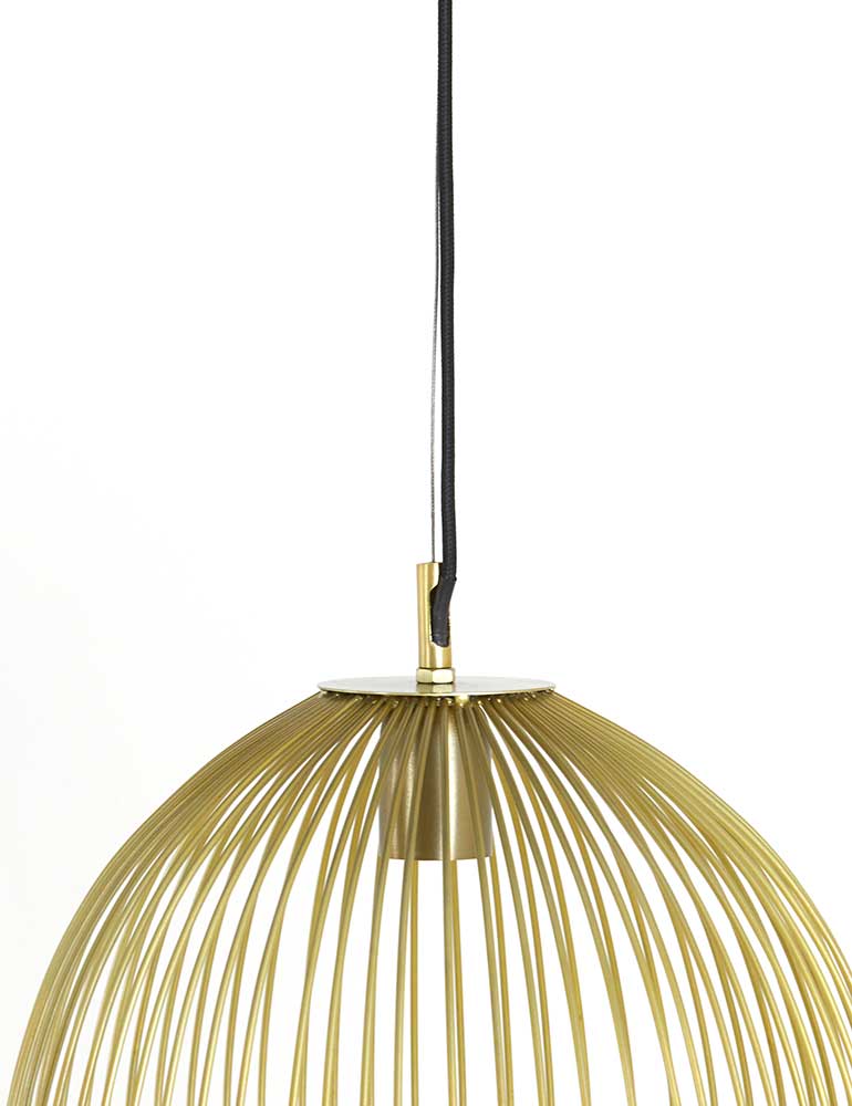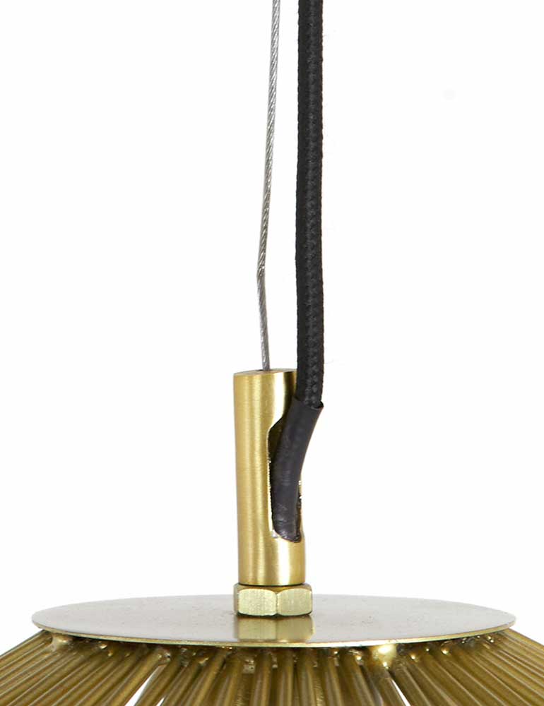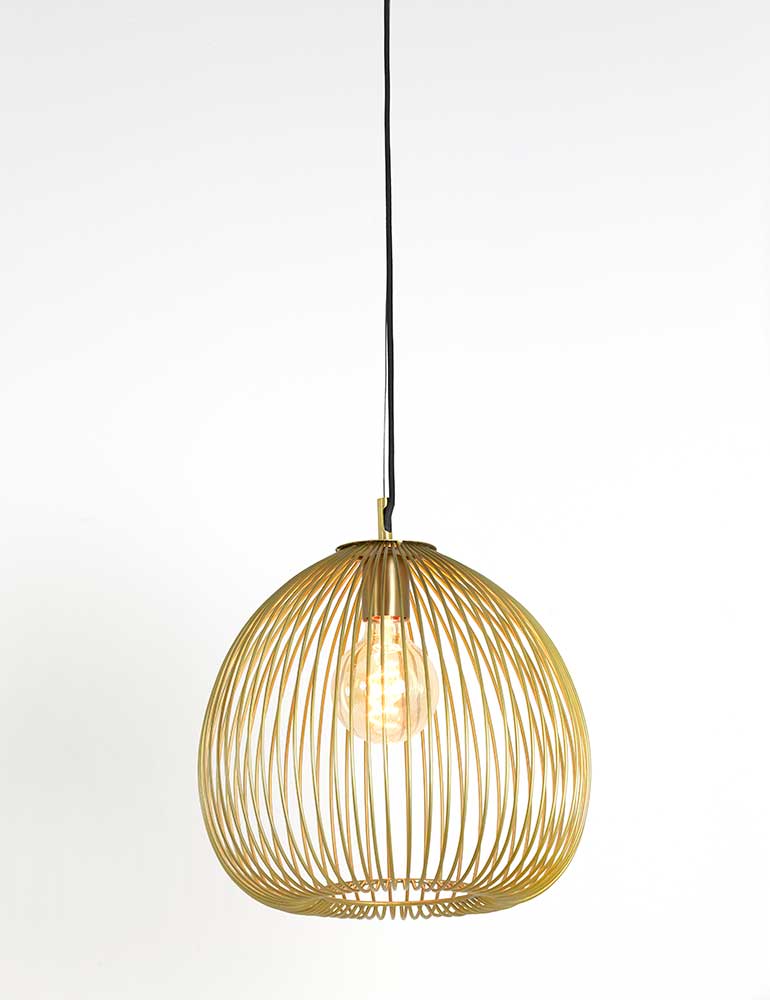 Original y dorada, esta bonita lámpara colgante transmite ligereza y exotismo. Por eso, ofrece un elemento de iluminación ideal para integrar en ambientes de estilo oriental, junto a una mesa redonda de té de bronce marroquí, una mesa de centro baja redonda y confortables sofás con cojines de diseño árabe.