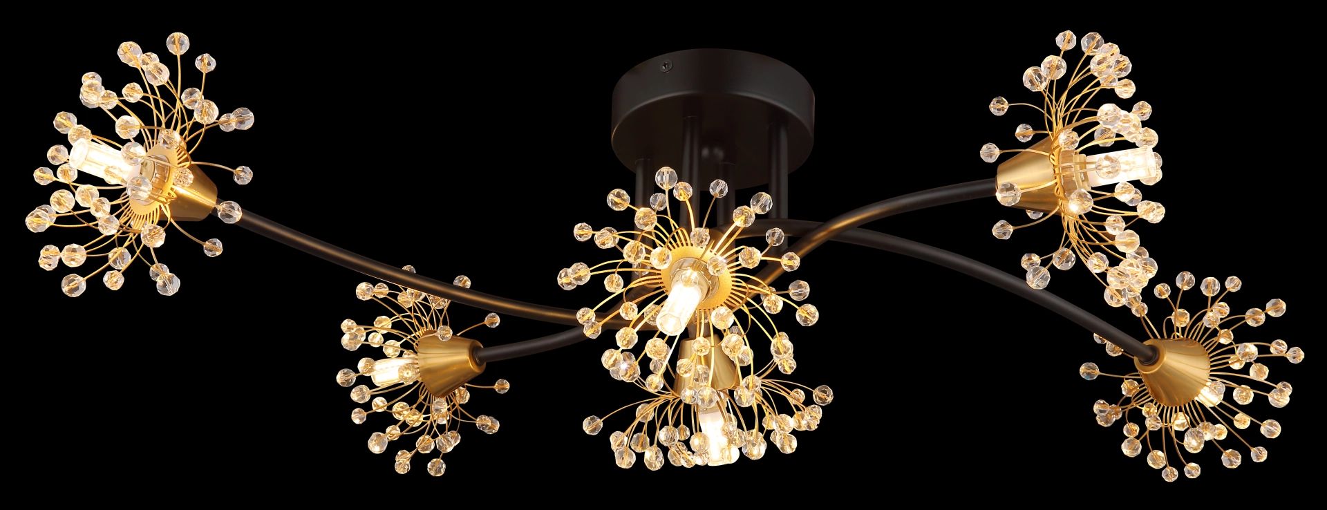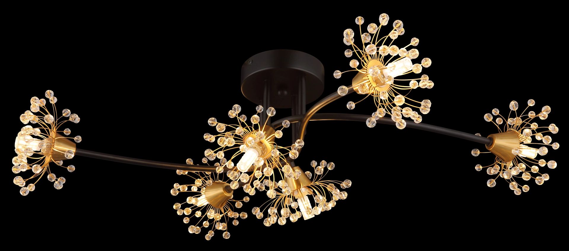 La lámpara de techo FIORE con sus elegantes brazos curvados y cristales en forma de flores ofrece una apariencia de lujo que enriquece tu interior. El diseño negro mate en combinación con las pantallas de lámpara en color dorado crea un conjunto armonioso que resalta maravillosamente en cualquier espacio. Esta lámpara es adecuada para bombillas LED G9, que no están incluidas, pero permiten adaptar la iluminación completamente a tus deseos.