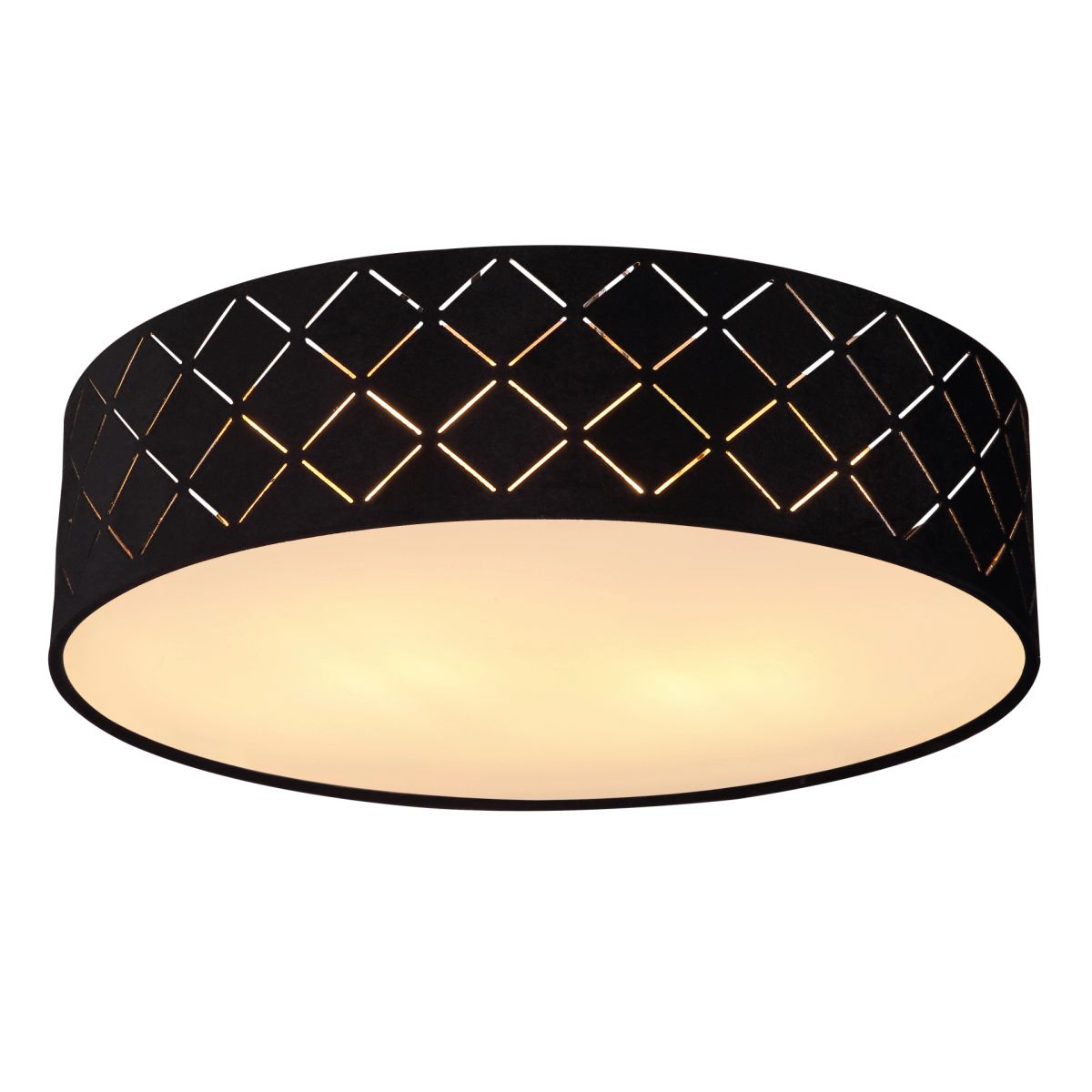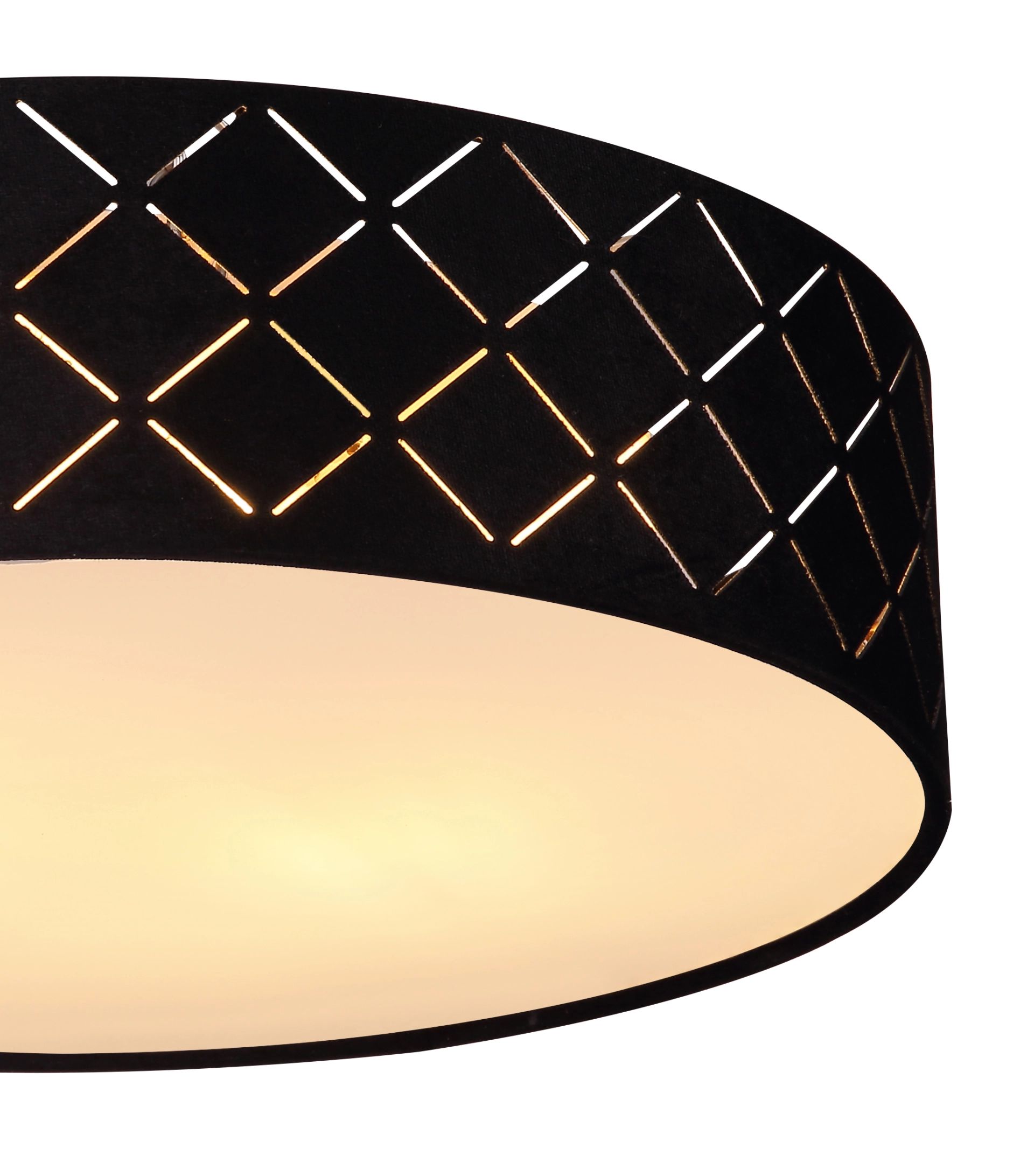 La lámpara de techo redonda VARIOS con un diámetro de 38 cm es un complemento elegante para cualquier interior. La lámpara está equipada con una pantalla de tela negra decorada con perforaciones decorativas. Esto crea efectos de luz encantadores en su espacio. En el interior, la lámpara cuenta con una capa de plástico color dorado que refleja la luz de manera impresionante. Además, el acabado satinado en el vidrio plástico proporciona una distribución uniforme de la luz en la habitación.