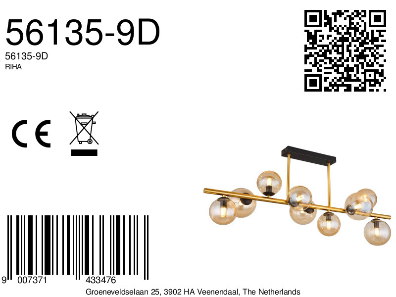 Esta elegante lámpara de techo de la serie Riha es un verdadero punto focal en su interior. Sujeta a un estrecho soporte de techo negro, una barra metálica de diseño elegante de 87 cm se eleva, a la que están unidas dos barras de color latón. En total, ofrece espacio para nada menos que nueve bombillas LED G9, cada una terminada con una hermosa pantalla de vidrio ámbar. Esta combinación de materiales y tonalidades de color añade un toque de lujo a su sala de estar.
