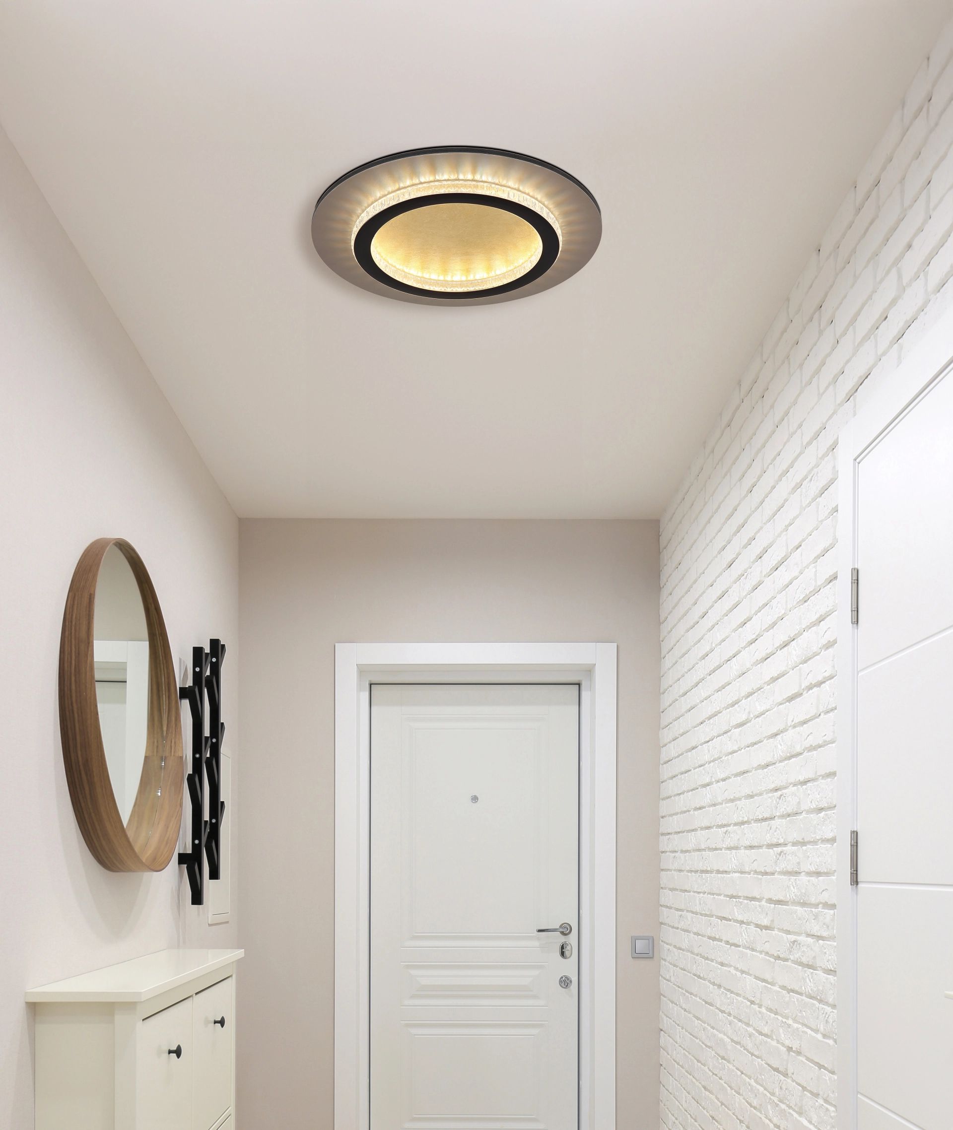 Gracias a la tecnología LED regulable, puede ajustar fácilmente la intensidad según sus deseos. La temperatura de color también es ajustable de 2700 K a 6500 K, lo que le permite crear la atmósfera perfecta para cada ocasión. El control remoto incluido facilita el manejo de la lámpara y la práctica función de memoria recuerda sus configuraciones favoritas. La lámpara de techo Jayden combina funcionalidad con estilo y es una excelente opción para espacios de vida modernos.