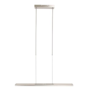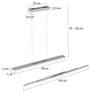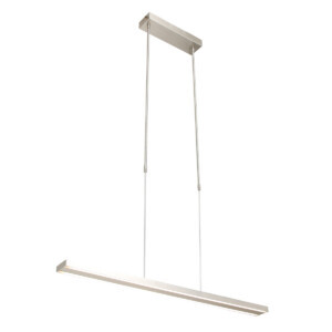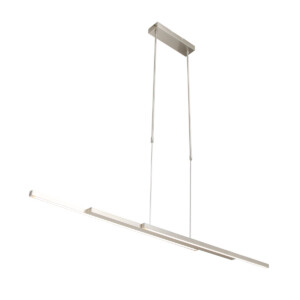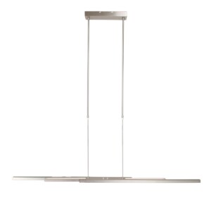 La moderna lámpara de comedor extensible de acero de la serie Zelena de Steinhauer ofrece una experiencia de iluminación única gracias a cuatro puntos de luz: dos en la parte inferior y dos en la parte superior, lo que permite que la luz se distribuya de manera especial. Equipado con tiras LED integradas (2x 4 Vatios, 800 Lúmenes y 2x 13 Vatios, 2600 Lúmenes) para una óptima distribución de la luz. El regulador de empuje en la parte superior permite ajustar el color de la luz entre 2200 y 4000 Kelvin y atenuar la intensidad. Ajustable en altura de 78 cm a 120 cm y en longitud de 88 cm a 140 cm.