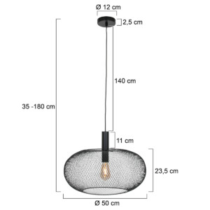 Una lámpara transparente es un bonito complemento para tu decoración. El color negro añade ambiente al conjunto, pero gracias al material abierto, la lámpara no es dominante. La forma redonda encaja perfectamente en un interior retro. Pero también puede estar en una sala de estar moderna sobre la mesa del comedor. O en la habitación de un adolescente como lámpara colgante en el centro de la habitación.