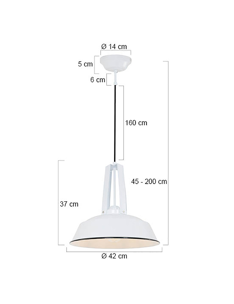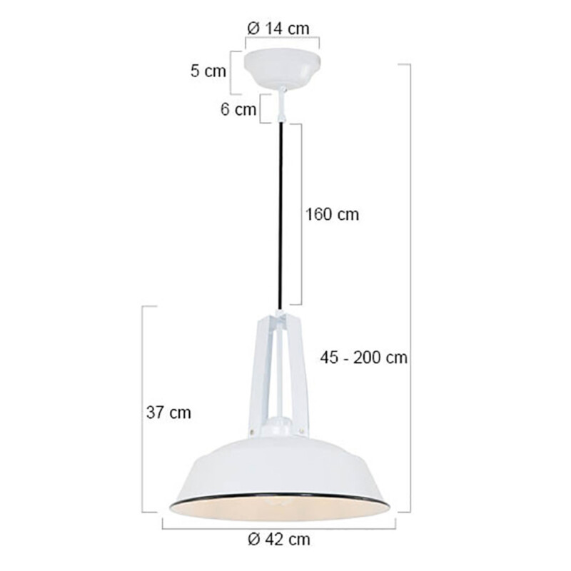 ¿Tienes un interior blanco con detalles en negro o de colores? Entonces esta lámpara colgante industrial de Mexlite se adaptará perfectamente a tu estilo de vida. “Luna” es una lámpara blanca y moderna con un toque de principios del siglo pasado. Las fábricas de entonces tenían todas estas geniales lámparas. A todo el mundo le gusta esta lámpara por su apariencia robusta y elegante. Cuélgala en varias sobre tu mesa de comedor. ¡Éxito asegurado!