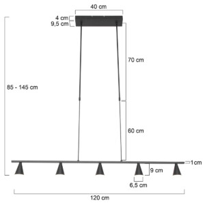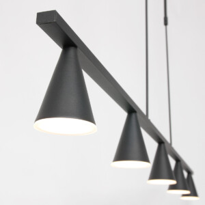 La lámpara colgante Vortex combina estilo con funcionalidad. Este diseño moderno con cinco puntos de luz en forma de cono está equipado con módulos LED fijos de 5 vatios, con una salida total de luz de 1100 lúmenes. La lámpara ofrece colores de luz ajustables entre 2700 y 4000 Kelvin, permitiéndote crear fácilmente la atmósfera adecuada. El regulador táctil en la lámpara facilita el ajuste de la intensidad de la luz. La altura es ajustable de 85 a 145 cm, y con una longitud de 120 cm, esta lámpara se adapta perfectamente sobre la mesa de comedor.