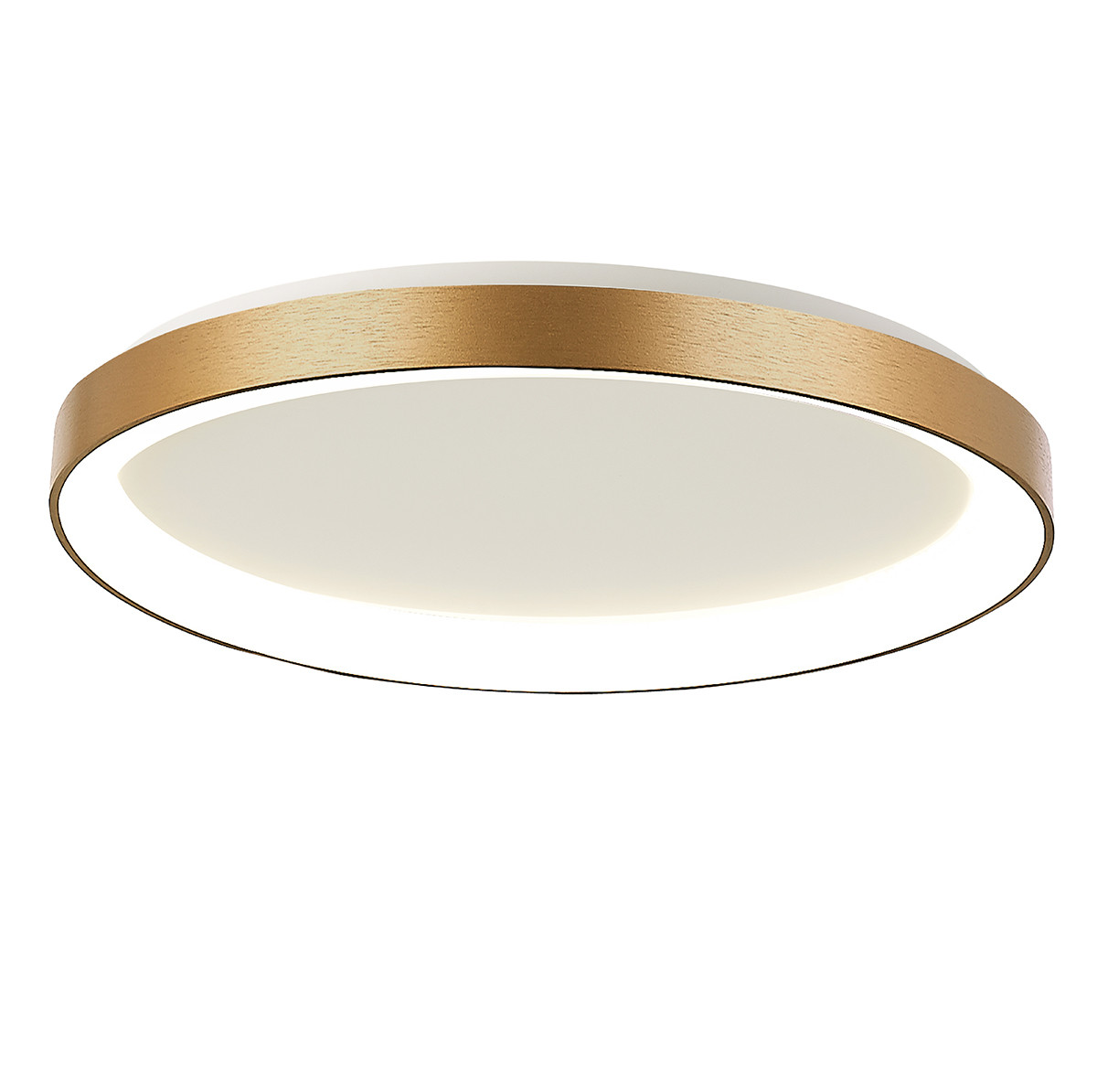 La lámpara de techo dorada Ringlede de Steinhauer ofrece una apariencia lujosa en un diseño sutil. Con un diámetro de 38 cm y un potente módulo LED de 30 vatios, esta lámpara de techo redonda proporciona un color de luz cálido de 2700 Kelvin y una impresionante luminosidad de 2400 Lúmenes. La forma plana de solo 6 cm de grosor contribuye a la apariencia elegante y estilizada, ideal para interiores modernos. El controlador regulable permite ajustar la intensidad de la luz según se desee. Perfecta para el comedor, el dormitorio o la oficina. Incluye 2 años de garantía del fabricante.