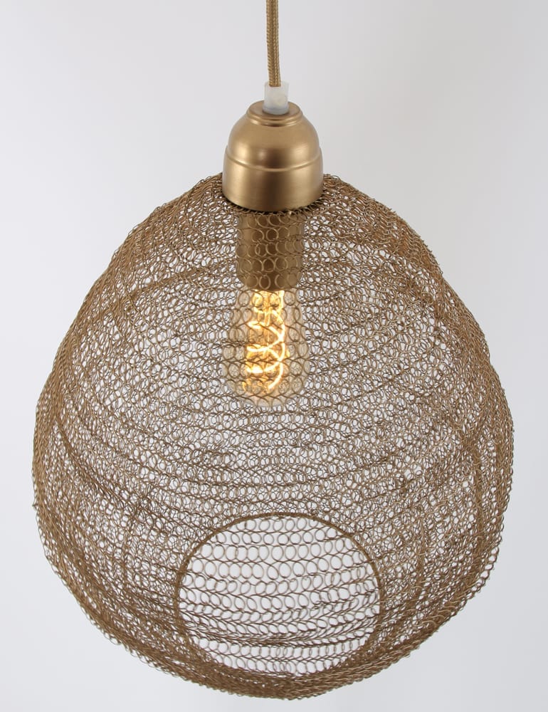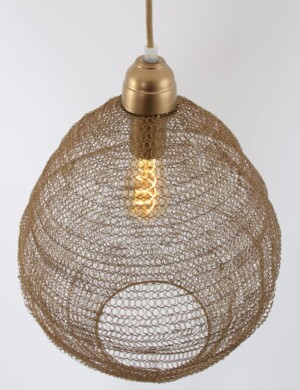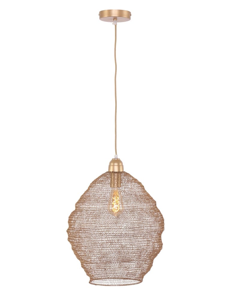 La imponente presencia de la lámpara de techo metálica dorada Light & Living genera un delicioso trampantojo. Con una silueta indefinible que reinventa un rico panal de miel, el metal color bronce que la forma parece un telar de mimbre en el primer golpe de vista. La luz amarilla interior se convierte en un corazón visual para esta forma, idónea tanto para el centro de tu comedor como para tu dormitorio de invitados.