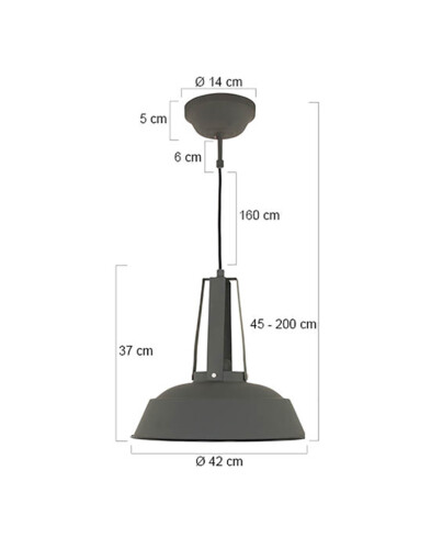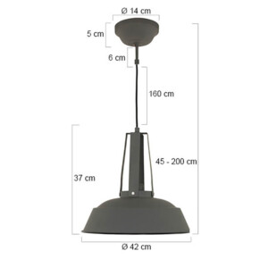 La lámpara colgante gris claro Eden de Mexlite aporta un sutil toque retro a tu hogar. El tono verde neutro hace que esta lámpara metálica redonda sea fácil de combinar con diversos estilos de interiores. La tapa del techo tiene un diámetro de 14 cm y una altura de 5 cm, mientras que la pantalla gris claro tiene un diámetro de 42 cm. Gracias al casquillo E27, la lámpara es adecuada para fuentes de luz de hasta un máximo de 60 vatios. El cable de 160 cm de largo y la altura ajustable hasta 200 cm ofrecen mucha flexibilidad en la instalación. Ideal para el comedor, el pasillo, el dormitorio o la sala de estar. Esta lámpara colgante se entrega con 2 años de garantía del fabricante.