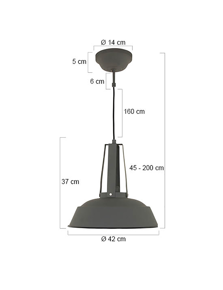 Eres fan del estilo industrial y por eso has llegado a esta impresionante lámpara de fábrica “Luna”. Esta lámpara colgante gris ha sido diseñada por Mexlite. Tiene esas características costillas metálicas en la parte superior que son típicas de las lámparas de naves industriales. La lámpara es de un hermoso color gris con un elegante borde negro en la parte inferior. El interior es blanco. ¿Cómo quedarían dos “Luna” sobre tu mesa de comedor?