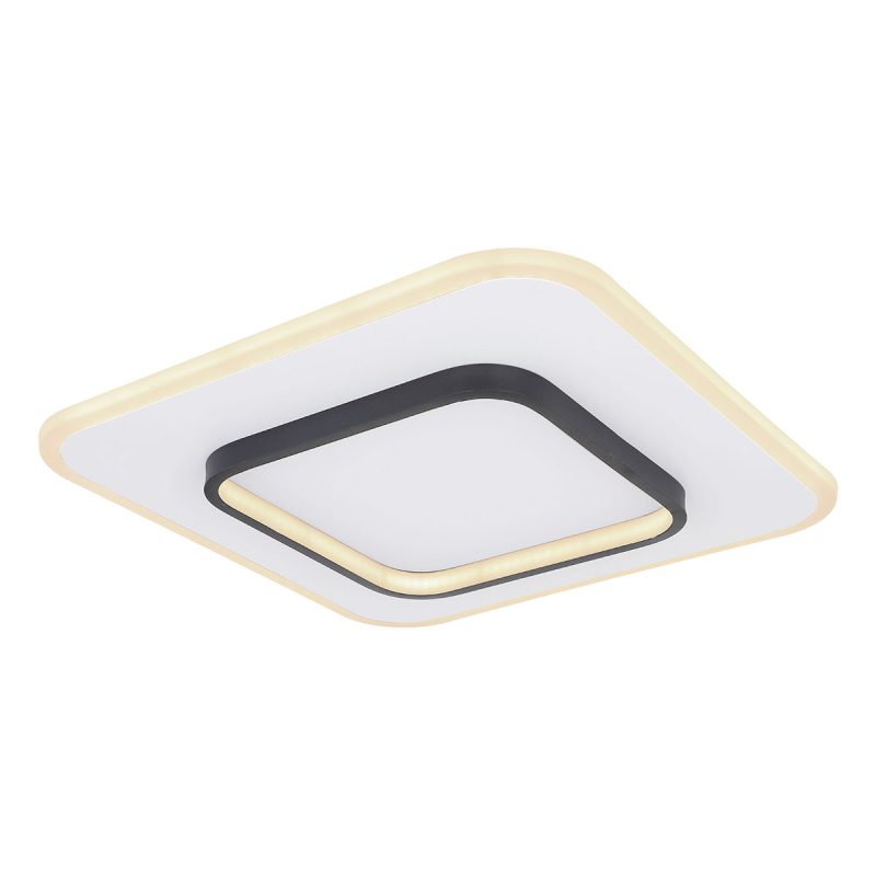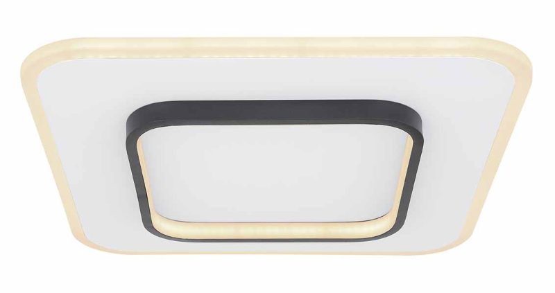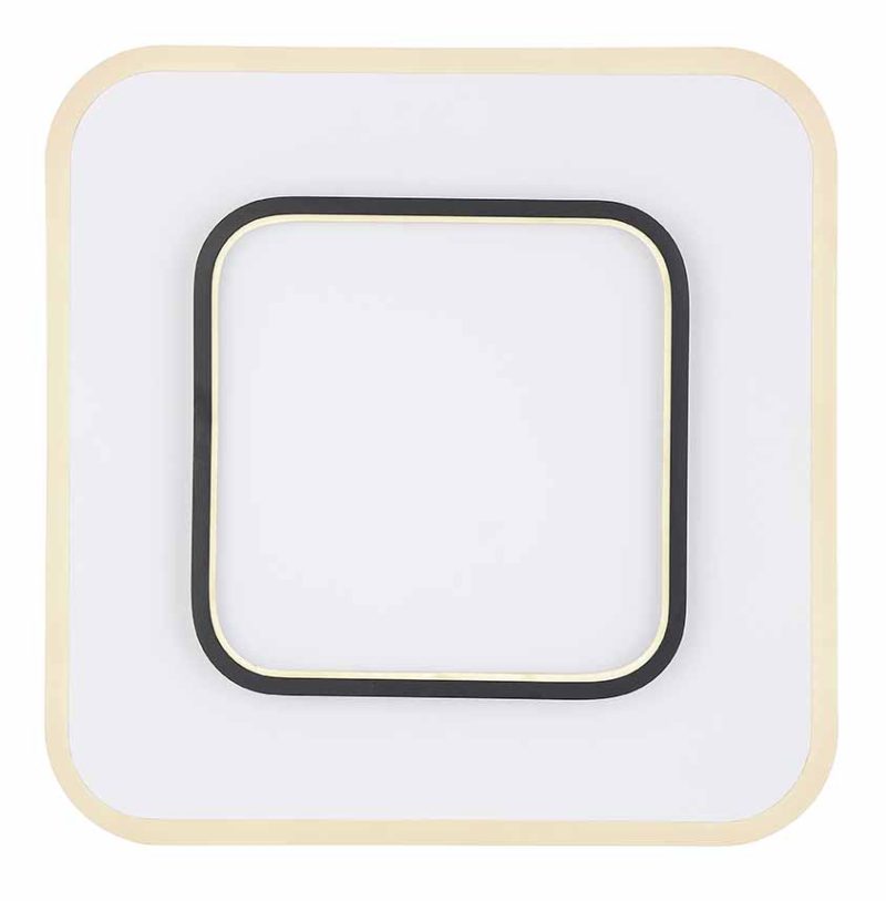 La serie Lima de lámpara de techo cuadrada (45,8×45,8 cm) es una mezcla armoniosa de simplicidad y elegancia, hecha de metal blanco y acrílico color opalino. Lo que destaca en la lámpara es el anillo negro en el centro, lo que crea una combinación interior única. Esta lámpara está equipada con fuentes de luz LED que ofrecen una potente salida de 2500 lúmenes. La característica única de esta lámpara de techo es el control remoto incluido, que te permite ajustar sin esfuerzo la intensidad de la luz y la temperatura de color, desde un cálido 3000 Kelvin hasta un más fresco 6000 Kelvin. Esta pieza ofrece un toque elegante de estilo para embellecer cualquier espacio de vida.
