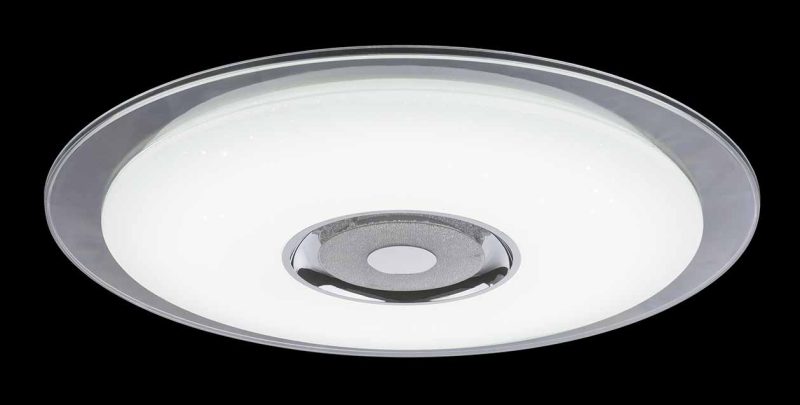 Descubre el encanto de la lámpara de techo Tune, ricamente adornada con cristales K5 premium que brindan un brillo chispeante al acrílico opalino. Diseñada de manera única para espacios grandes, su majestuosa dispersión de 60 cm hace una declaración impresionante. Una característica extraordinaria de esta lámpara es el altavoz integrado que se conecta a los teléfonos inteligentes a través de Bluetooth para transmitir música. Además, la aplicación correspondiente permite a los usuarios gestionar la intensidad y la temperatura del color de la luz, con potentes LED RGBW que pueden imitar cada color del espectro, incluidas diferentes tonalidades de blanco. Un control remoto incluido ofrece todas las funcionalidades de la aplicación para smartphone.