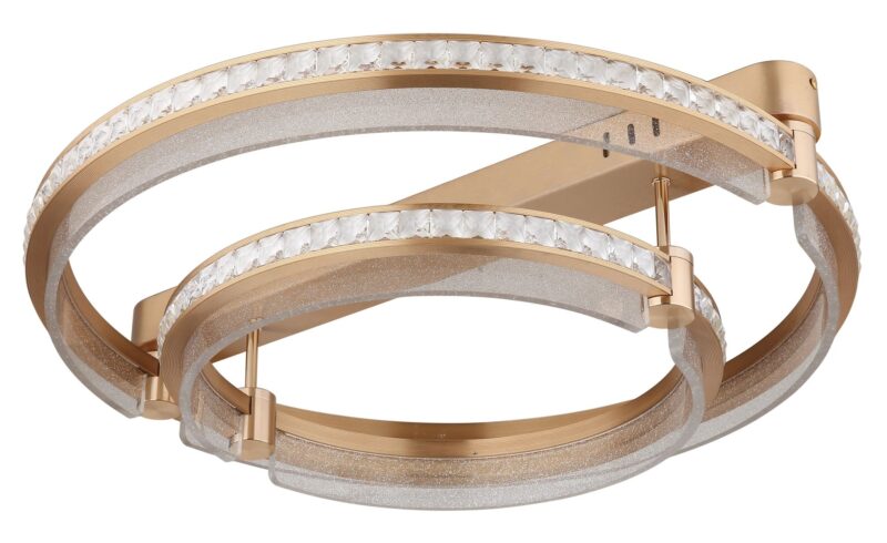 La lámpara de techo BLONDIE convence con su diseño único y añade un toque de glamour a su interior. Gracias a los anillos dobles redondos, esta lámpara crea acentos modernos que funcionan como un verdadero punto focal en cualquier espacio. El cuerpo de la lámpara está fabricado en metal dorado de alta calidad y aluminio cepillado, lo que contribuye a su aspecto elegante. La pantalla está hecha de cristal K5 claro y acrílico transparente, lo que proporciona una extraordinaria refracción de la luz y una atmósfera acogedora.