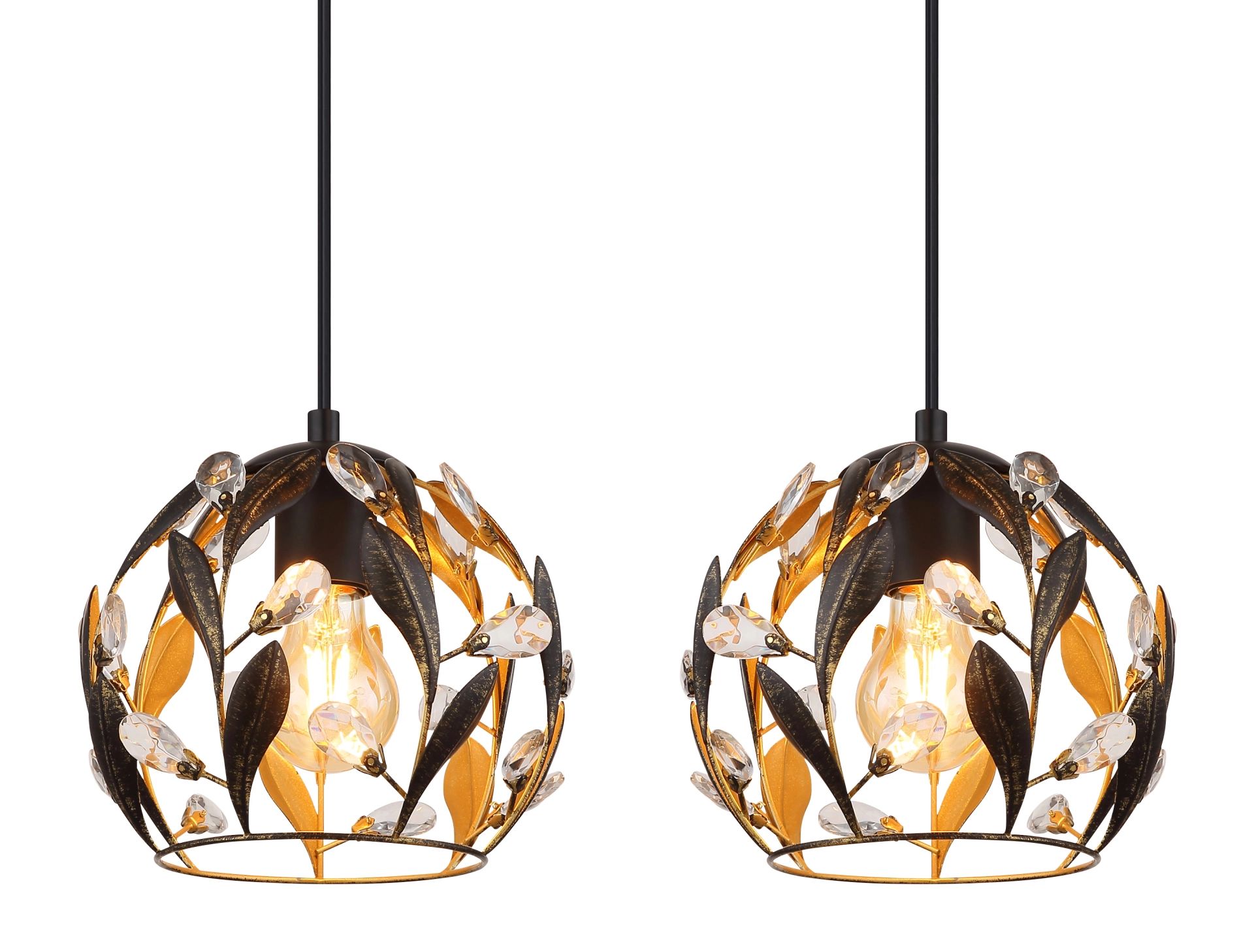 La lámpara colgante Mika es una perfecta mezcla de diseño atemporal y funcionalidad elegante. Con sus rieles rectos y tres colgantes, esta lámpara alargada se adapta sin esfuerzo a cualquier espacio. El cuerpo de metal pintado de negro mate irradia tanto modernidad como encanto tradicional. Las pantallas maravillosamente diseñadas de metal dorado patinado y elegante negro están decoradas con hojas de filigrana y cristales brillantes, lo que crea un juego de luces encantador que anima cualquier habitación.