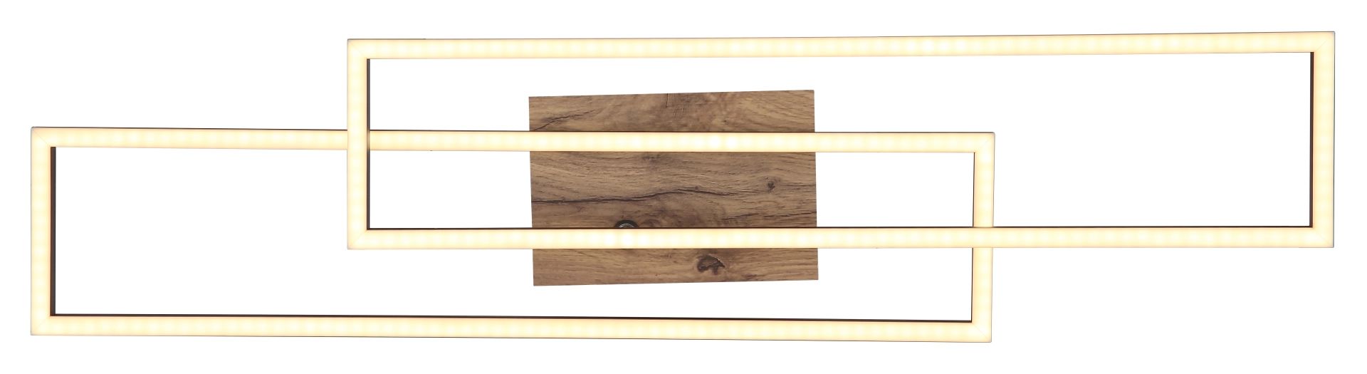 La lámpara de techo alargada Globo es un verdadero punto focal para cualquier habitación. Su diseño moderno, que consiste en dos rectángulos superpuestos de los cuales uno es giratorio, añade un acento estiloso a su interior. Fabricada en metal negro mate y con un acabado de madera MDF oscura, esta lámpara irradia elegancia y atemporalidad. La pantalla de aluminio negro mate y plástico opal asegura una distribución uniforme de la luz.