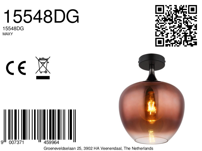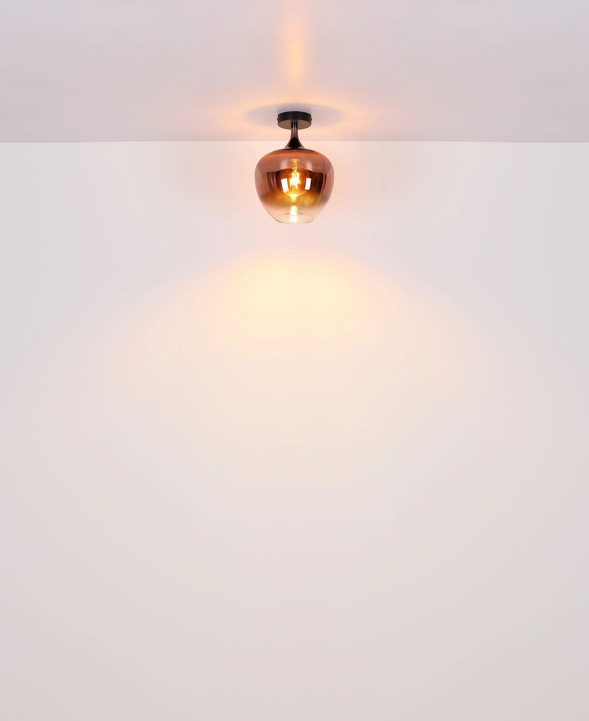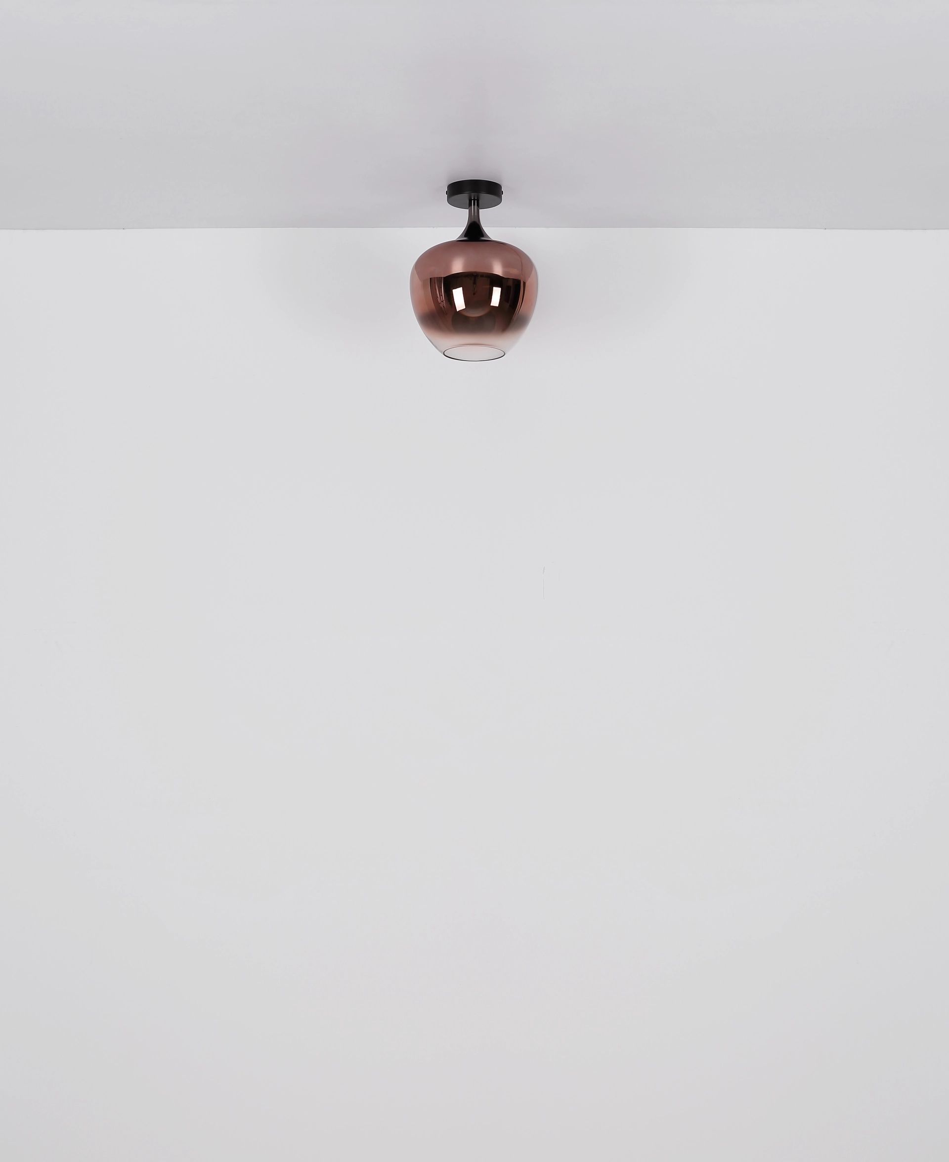 La lámpara de techo MAXY es una hermosa adición a cualquier interior gracias a su diseño elegante y atemporal. Esta lámpara cuenta con una pantalla de vidrio en forma de bola que tiene una apariencia moderna, gracias al uso de metal negro mate y cromo negro. El vidrio claro y fluido de la pantalla tiene un hermoso matiz cobrizo, que proporciona una iluminación ambiental en el espacio. Con un diámetro de 240 mm, la lámpara de techo MAXY ofrece una iluminación uniforme y brillante que ilumina cada habitación de manera óptima.