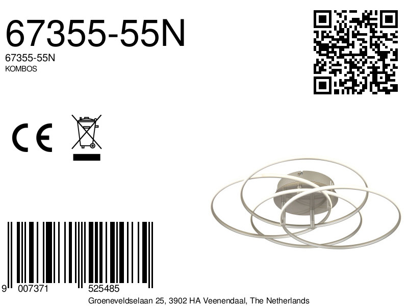 El plafón KOMBOS es una verdadera joya con su diseño moderno que coloca cuatro anillos en una forma redonda elegantemente uno encima del otro. El marco de níquel mate y la pantalla de aluminio, combinados con níquel y plástico opalino, le dan a la lámpara un aspecto estiloso y contemporáneo. Con un diámetro de 515 mm, esta lámpara es ideal para espacios más grandes como salones, comedores y pasillos.