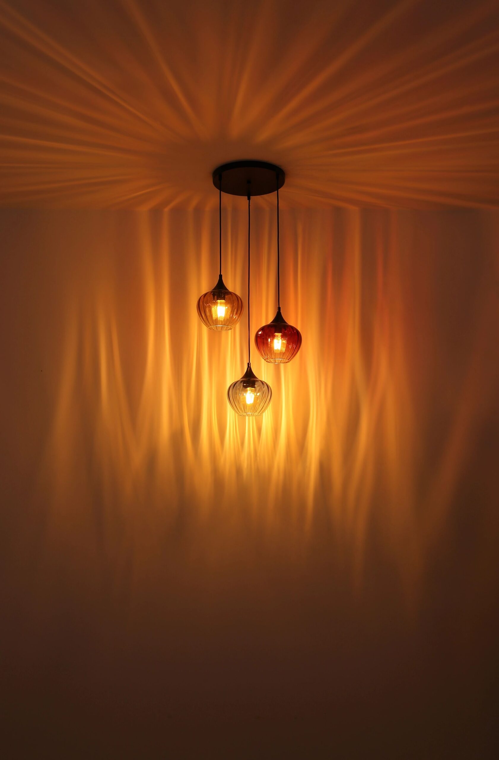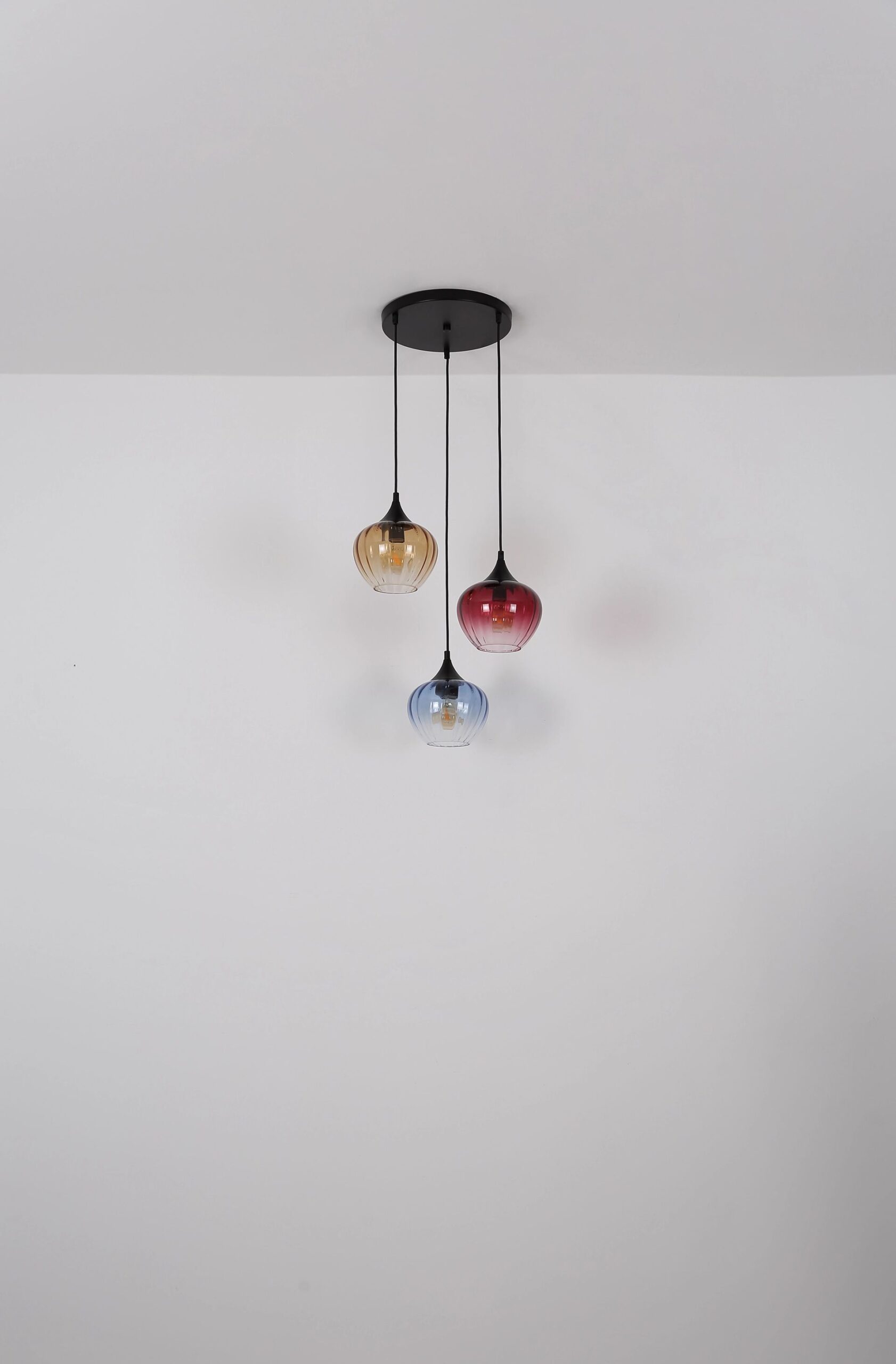 La lámpara colgante SANDER está hecha de metal negro mate y llama la atención gracias a su diseño llamativo y único. Los elementos de vidrio en azul, rojo y ámbar son claros y crean un juego de luces encantador. Esto genera una atmósfera especial en cualquier espacio. Las lentes están además equipadas con ranuras que rompen la luz de manera efectiva y establecen una ambientación armoniosa.