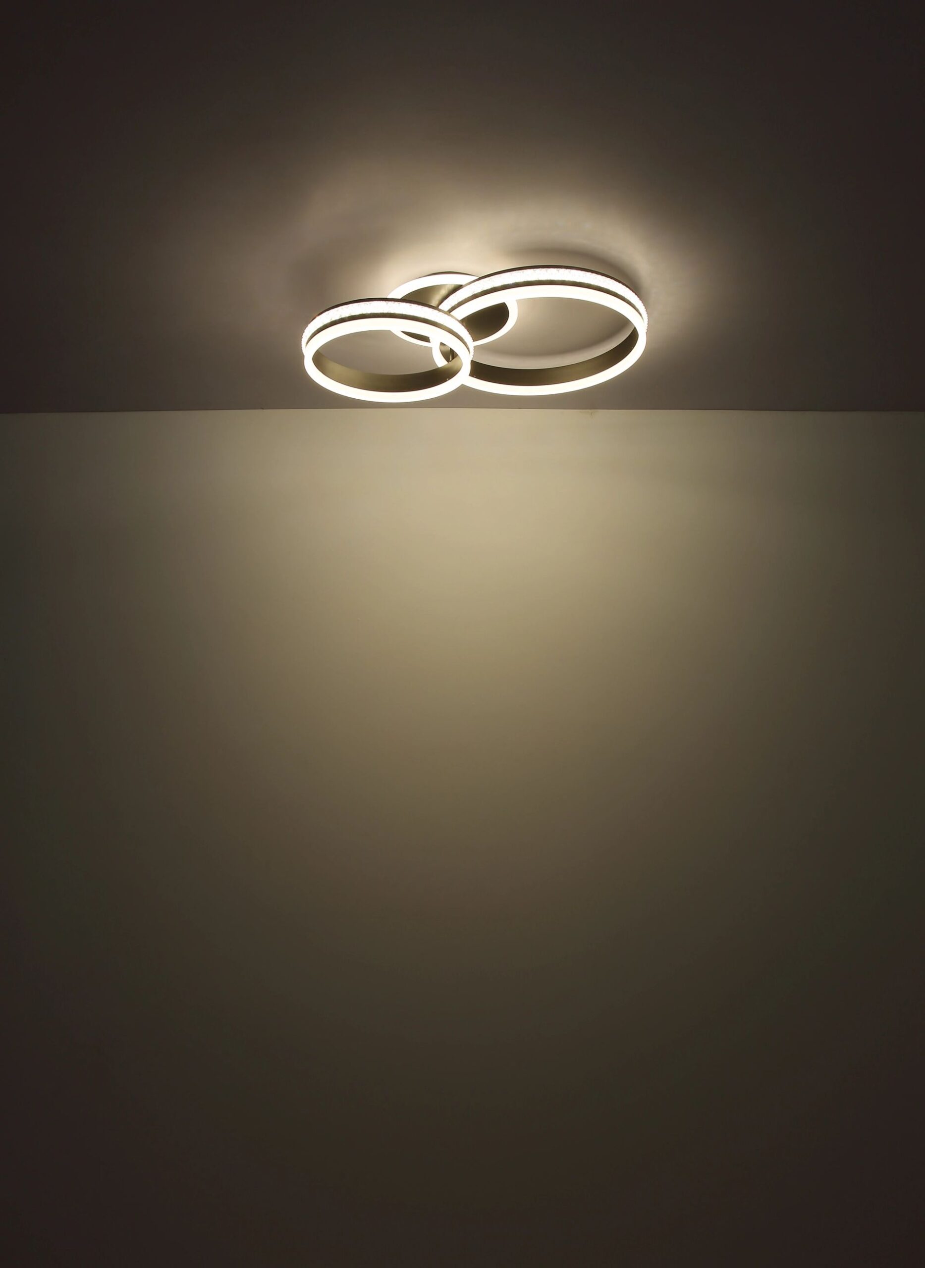 Con la función de atenuación, puede ajustar el brillo a su gusto, mientras que la función CCT ofrece una transición suave en la temperatura de color desde cálido 2700K hasta frío 6000K. Además, la función de memoria guarda sus configuraciones favoritas para una experiencia de iluminación única. Con una impresionante salida de luz de 3800 lúmenes, esta lámpara de techo es ideal para amplias salas de estar, oficinas u otros espacios. La lámpara de techo ALAINA no es solo un elegante elemento de diseño, sino que también proporciona una iluminación clara y agradable. Descubra la perfección del diseño contemporáneo y soluciones de iluminación innovadoras con la lámpara de techo ALAINA en su hogar.