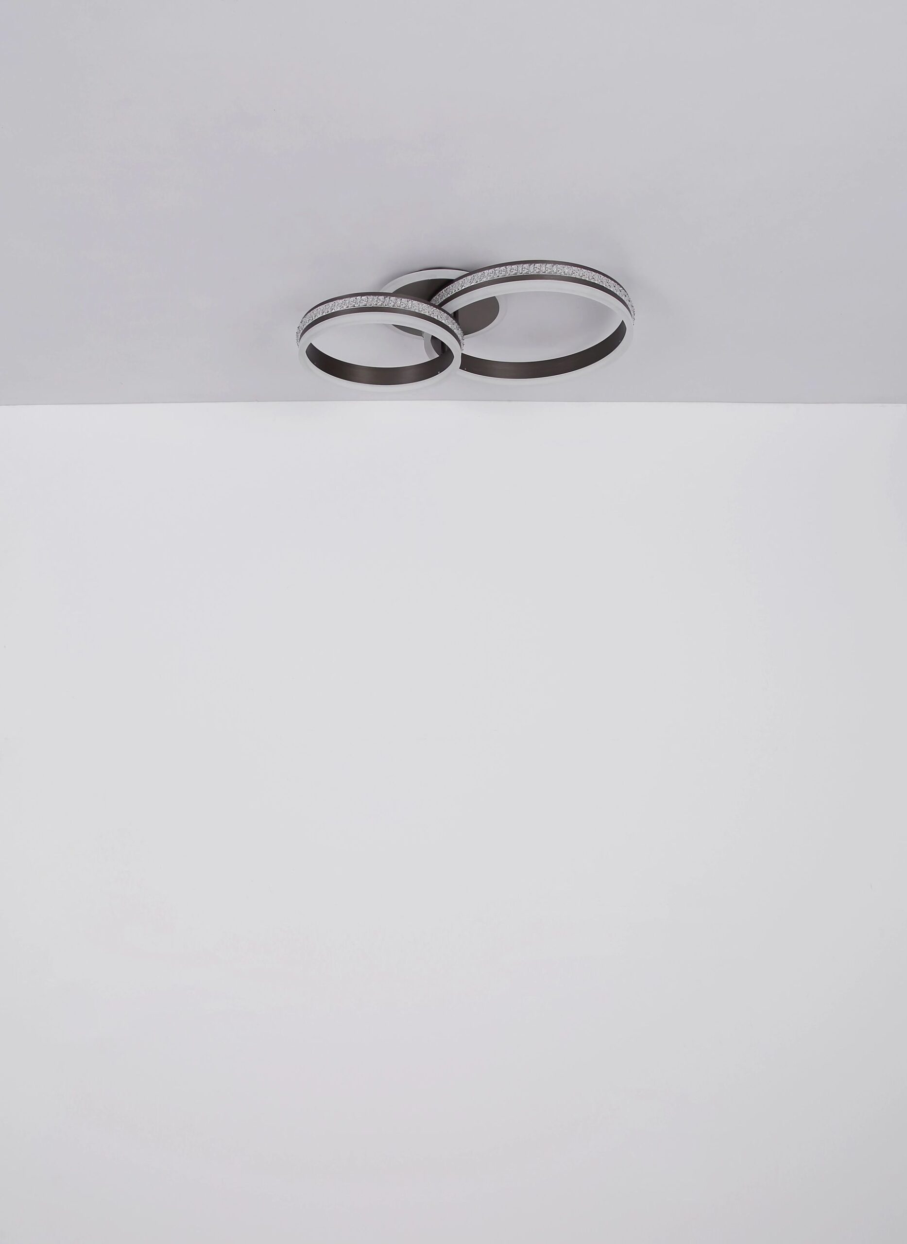 Conozca la lámpara de techo ALAINA, un moderno accesorio de iluminación rectangular que no solo es elegante, sino que también impresiona con sus características únicas. El marco metálico gris mate se combina a la perfección con la pantalla de aluminio gris mate, decorada con brillantes cristales K9 y silicona opalina. Esta refinada combinación crea un encantador juego de luz en su interior. La lámpara ALAINA cuenta con un práctico control remoto que le permite ajustar la iluminación fácilmente a sus preferencias.
