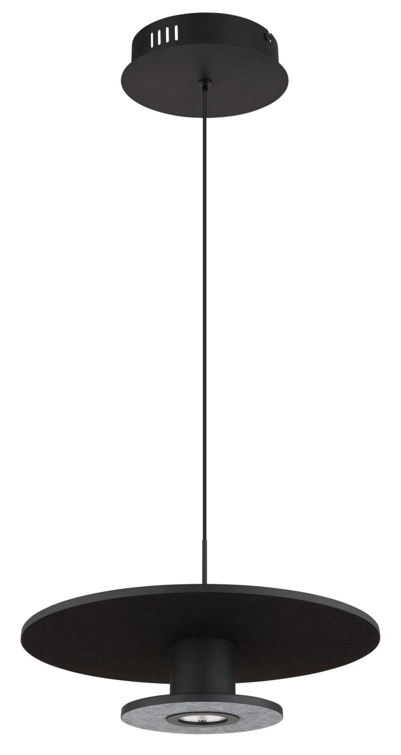 La lámpara colgante CARTER Globo es la elección ideal para quienes buscan una iluminación elegante y moderna. Con su forma redonda y discos planos recubiertos de fieltro, esta lámpara colgante ofrece un diseño único que se adapta perfectamente a interiores exigentes. La lámpara tiene una sólida construcción metálica con un acabado negro mate, lo que proporciona una apariencia limpia y contemporánea. La pantalla está hecha de aluminio con el mismo elegante acabado negro mate, lo que contribuye a un todo armonioso. El revestimiento textil negro-grisáceo añade un acento atemporal al diseño.