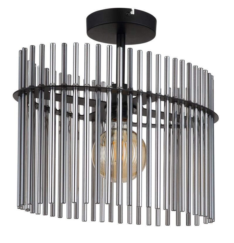 Lámpara de techo moderna con vidrio ahumado y metal negro Gorley