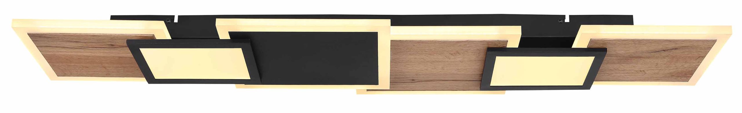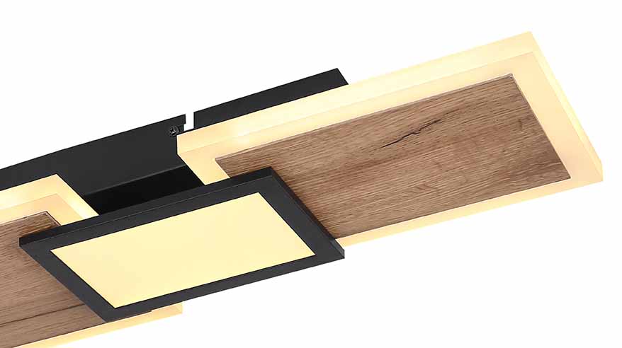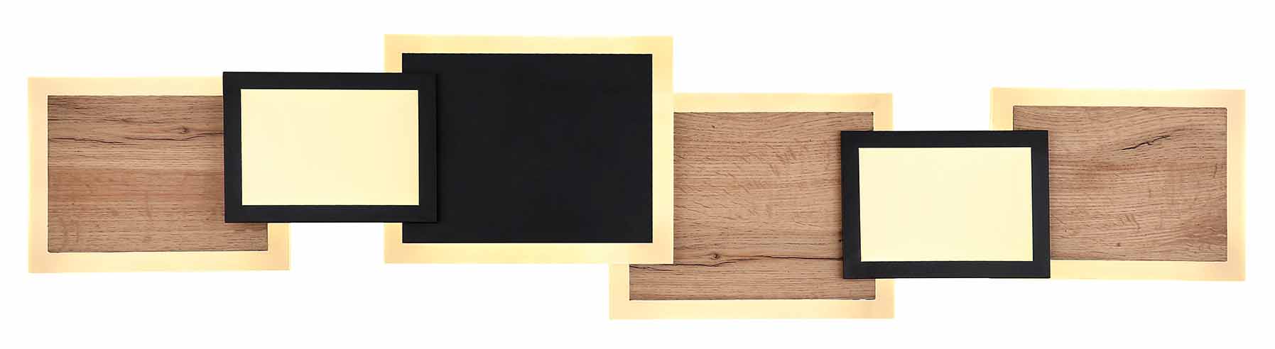 Encante el espacio con esta única y bellamente diseñada lámpara de techo LED. Con sus seis paneles iluminados, anidados en un marco rectangular y acabados con sutiles acentos de madera, esta lámpara emite una cálida luz blanca de 3000 Kelvin. El diseño cuidadosamente elaborado en negro con apariencia de madera crea una atmósfera armoniosa, perfecta para cualquier espacio de vida o trabajo. Deje que su interior hable con esta inspiradora solución de iluminación.