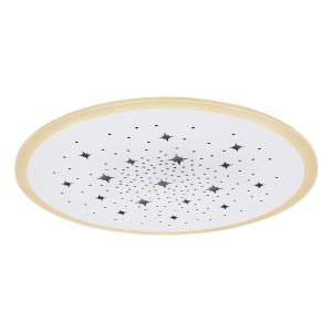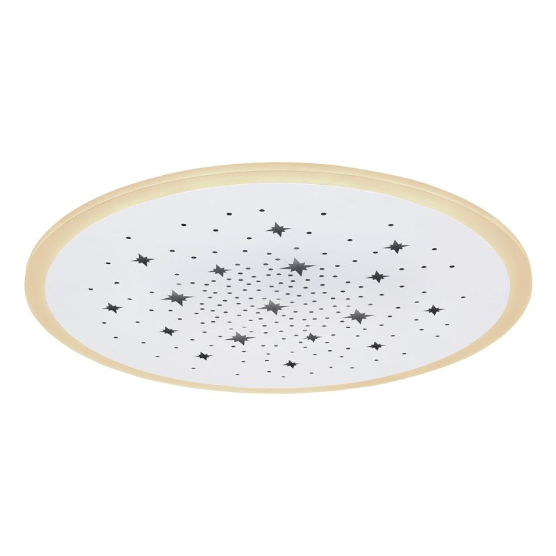 Experimenta la allure de nuestra exclusiva lámpara de techo de la colección Murphy, con un diámetro de 50 cm que ofrece una atmósfera acogedora en cualquier espacio. El diseño incluye un anillo de plástico alrededor de una placa metálica blanca llena de hermosos recortes en forma de estrella y redondos que iluminan una gama de colores RGB. Las lámparas LED incluidas pueden proporcionar una potente salida de luz de 2400 lumen. Esta lámpara está equipada con funciones que incluyen una opción regulable y la personalización del espectro de luz que varía de 2700 Kelvin (blanco cálido) a 6500 Kelvin (blanco frío). Además, cuenta con una útil función de luz nocturna. Completa el conjunto con otras lámparas de la misma serie y brinda a tu interior una apariencia coherente.