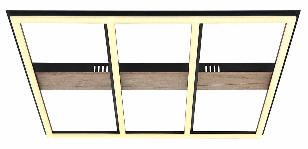 Experimenta la elegante combinación de metal y MDF con acabado en negro mate en la moderna lámpara de techo de la serie FROOMY. Esta lámpara, con unas dimensiones de 600x600x55mm, es adecuada para espacios más grandes, mientras que la pantalla de plástico opalino distribuye una luz uniforme y acogedora. El LED incorporado proporciona una brillantez potente y, al mismo tiempo, ahorradora de energía, con 3600lm a 3000K, alcanzando un pico de 4900lm para lugares que necesitan más luz. Por lo tanto, la lámpara de techo es perfecta para quienes buscan una solución de iluminación que sea tanto estética como práctica.