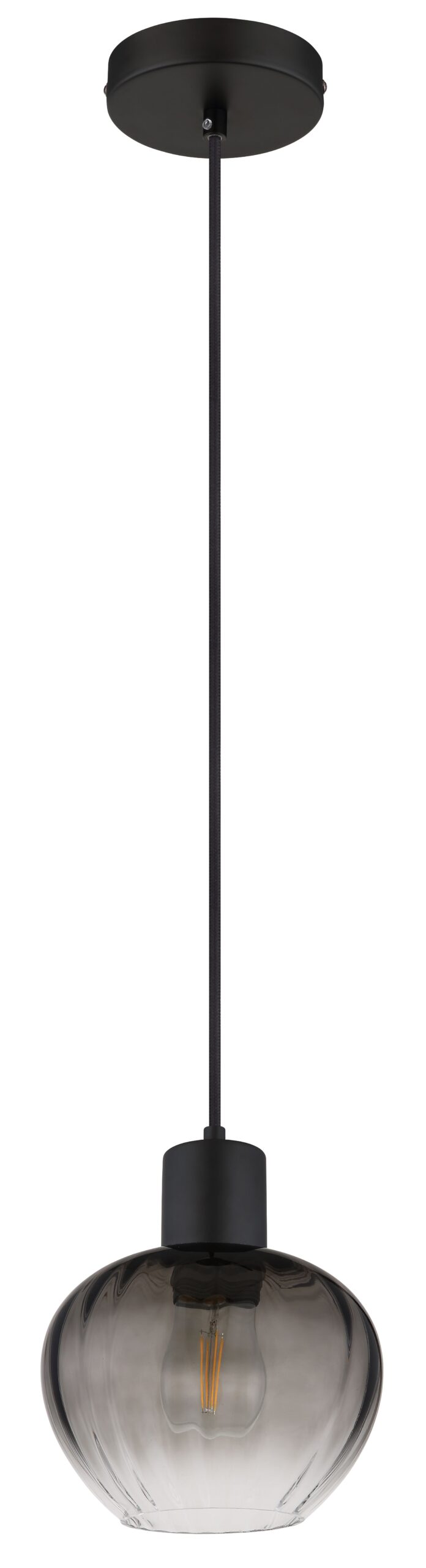 Conoce la lámpara colgante TOY, un elemento llamativo y elegante que embellece tu interior de inmediato. Su diseño único con una pantalla redonda y esférica de vidrio ahumado, decorada con elegantes surcos, crea reflejos de luz encantadores que dan vida a cualquier espacio. El cuerpo metálico negro mate le da a la lámpara un aspecto moderno e industrial, lo que contribuye a la estabilidad y durabilidad del conjunto. Con un diámetro de 190 mm, la TOY se puede colocar perfectamente sobre mesas de comedor, islas de cocina o en acogedores rincones de lectura, sin ocupar mucho espacio.