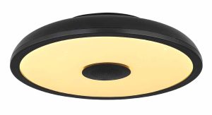 Vive el espectáculo de luz definitivo en tu propia casa con nuestra serie de lámparas de techo Raffy en color negro. Esta única lámpara de 28 cm de forma redonda realza tu interior y aporta una vibra moderna. Detrás del anillo de plástico opalino se encuentra un potente altavoz bluetooth de 3W que se complementa con iluminación LED con una intensidad de luz de 800 lúmenes. El mando a distancia incluido no solo cuenta con una función de atenuación, sino que también te permite ajustar el color de la luz de cálido 2700 Kelvin a frío 6500 Kelvin, gestionar el volumen y hacer que la lámpara brille en colores RGB. Incluso puedes configurar la lámpara como luz nocturna y combinarla con otros productos de la serie Raffy para crear un todo estilizado.