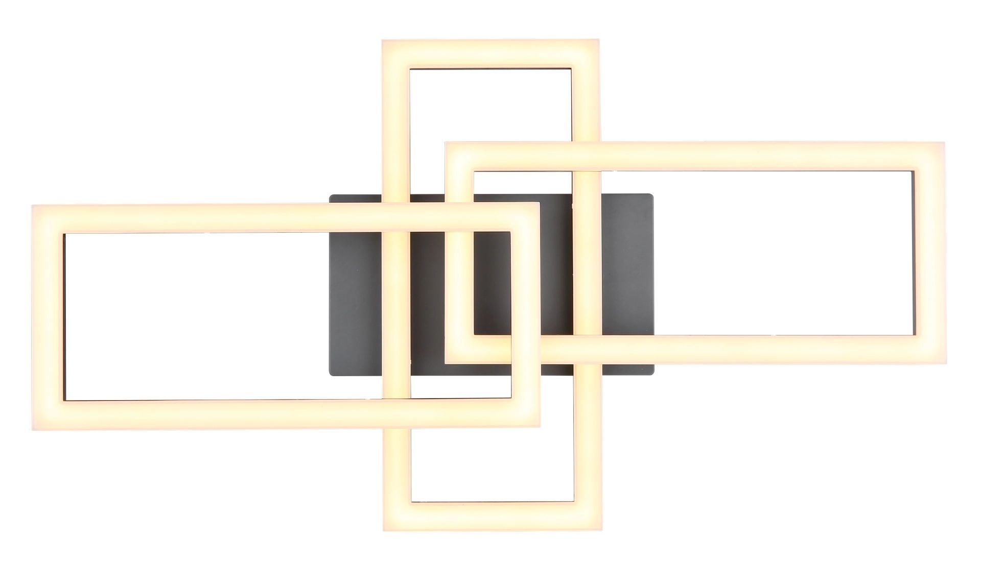 La lámpara de techo SAPENA está diseñada con una forma rectangular moderna y elegante, compuesta por tres rectángulos superpuestos. La carcasa está hecha de una mezcla especial de plástico negro mate y gris mate, lo que contribuye a una apariencia única. La pantalla de la lámpara está fabricada en plástico opalino, lo que genera una iluminación agradable y difusa. Con una potencia de 1200 lúmenes y una temperatura de color de 3000 K, esta lámpara ofrece un cálido resplandor blanco.
