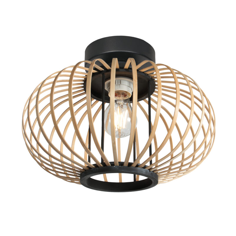 Lámpara de techo negra con pantalla de bambú ancha Steinhauer Bloeba