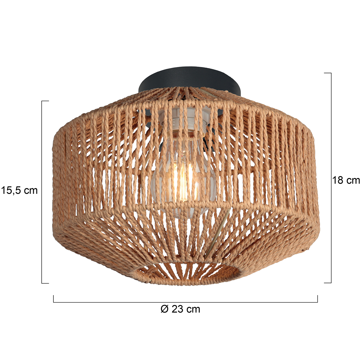 Para quienes buscan un aspecto compacto y natural, esta combinación de lámpara de techo negra y pantalla de cuerda ofrece una imagen total acogedora y versátil. El accesorio con casquillo E27 te da la libertad de elegir la fuente de luz deseada, mientras que la pantalla finamente trenzada proporciona una iluminación cálida y acogedora.