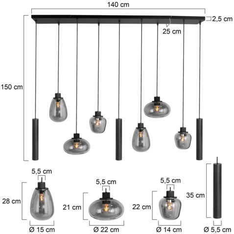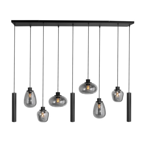 La lámpara colgante Steinhauer Reflexion es la combinación perfecta de diseño industrial y lujo. El acabado negro mate junto con las esferas de vidrio ahumado proporciona una apariencia refinada que enriquece cualquier espacio. Gracias a los nueve puntos de luz, esta lámpara colgante ofrece una iluminación acogedora y es ideal para comedores y salas de estar. La función de altura ajustable permite crear la configuración perfecta. Con la tecnología dim to warm, puedes elegir fácilmente la intensidad de luz y el ambiente deseado. Añade una declaración atemporal y elegante a tu interior con la lámpara colgante Reflexion.