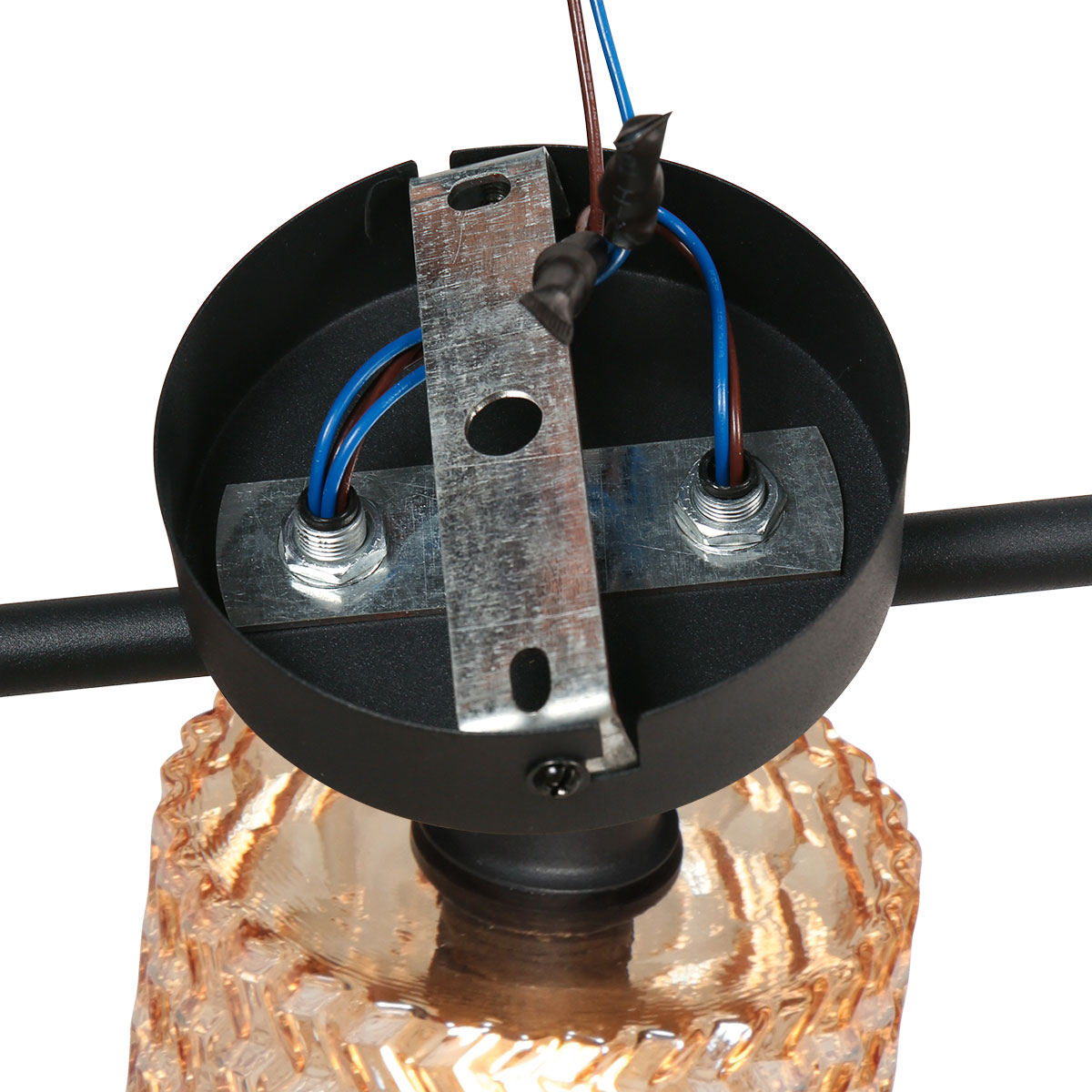 Lámpara de techo negra con tres pantallas de vidrio ámbar Mexlite Ocre