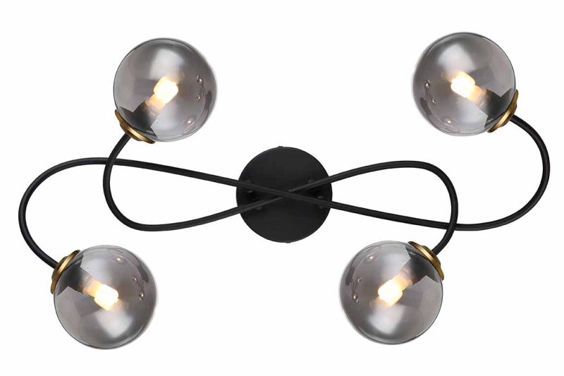 Lámpara de techo negra/metal girada 4 bolas de vidrio ahumado Globo Jorge
