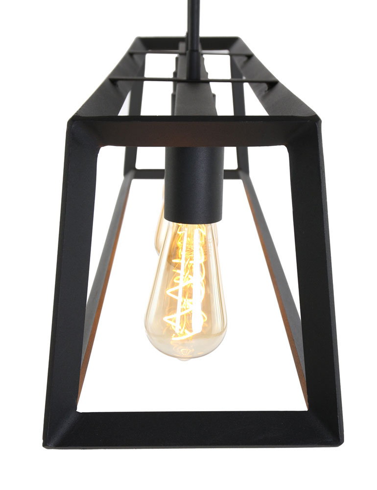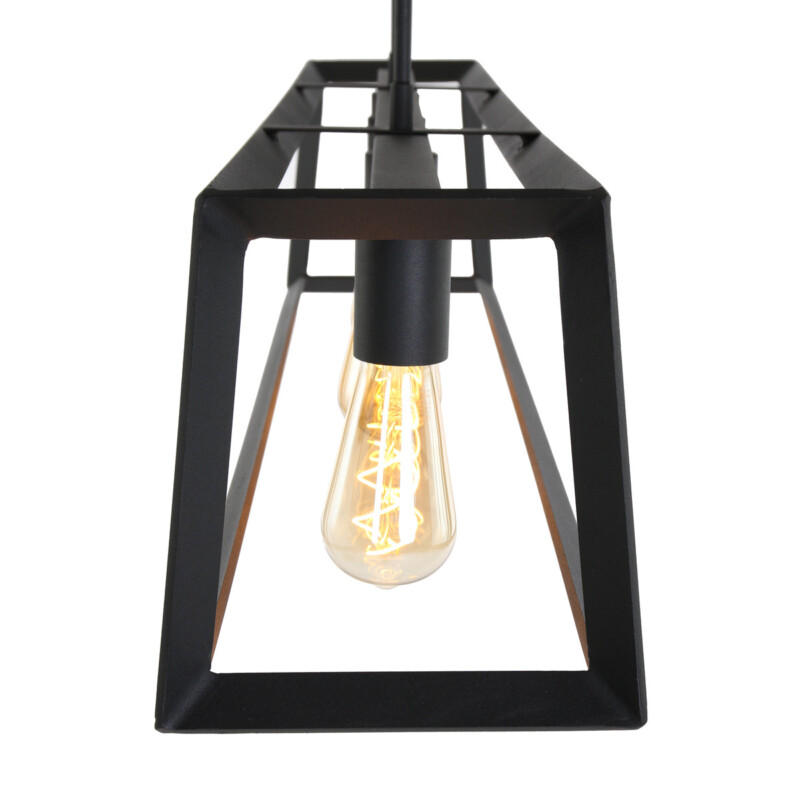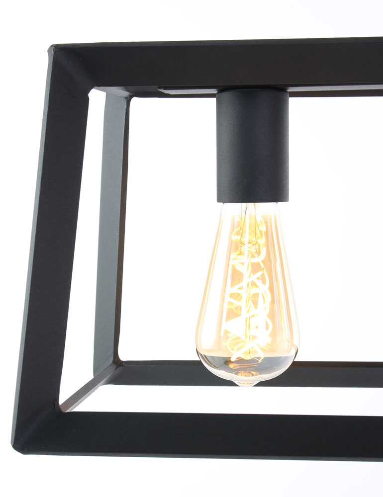Con esta lámpara colgante de marco negro de Mexlite, añadirás un elemento industrial robusto a tu interior. La lámpara de diseño cuenta con un marco rectangular de metal negro, que proyecta la luz hacia afuera para un efecto divertido. En el marco abierto se han integrado cuatro casquillos, perfectos para bombillas decorativas que crean un efecto de luz ambiente. La lámpara se cuelga con dos cables resistentes y es ideal como lámpara doble sobre una mesa de comedor o una barra.