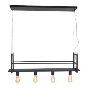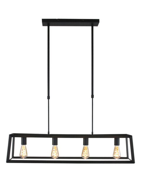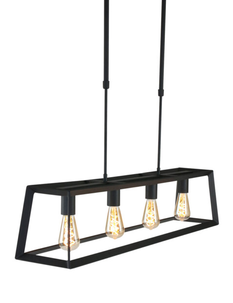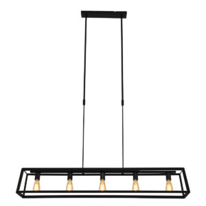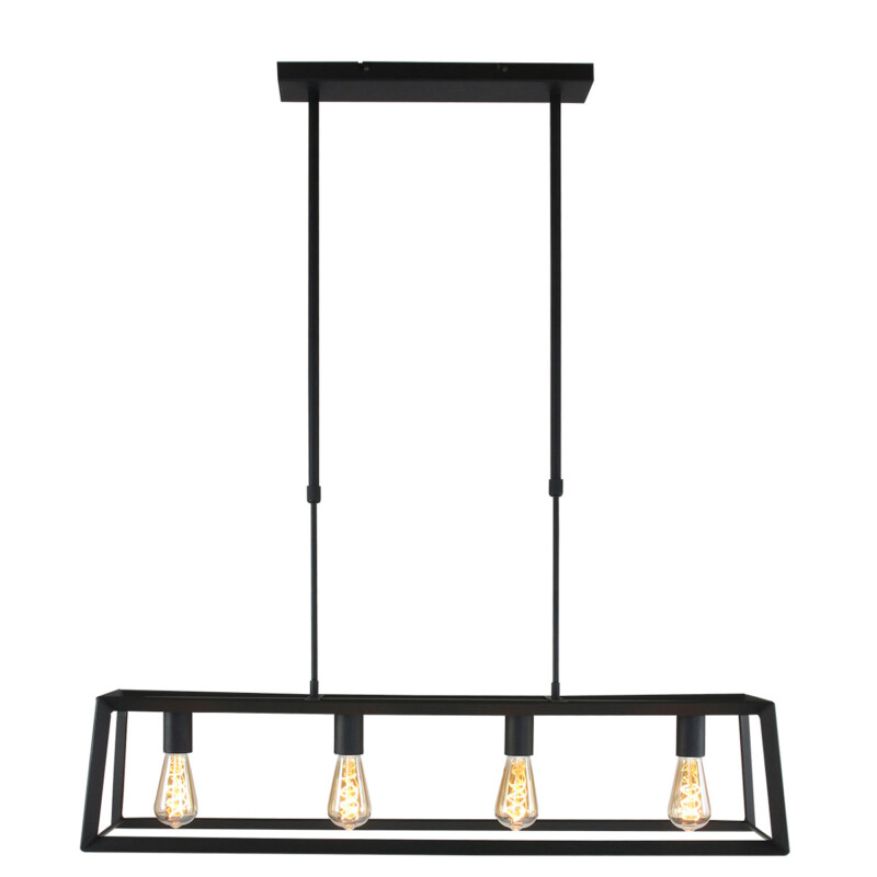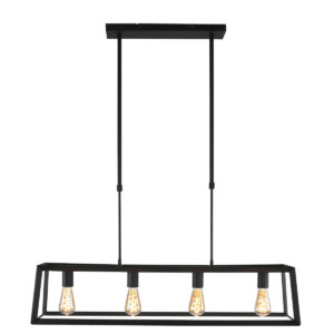 La lámpara colgante Buckley tiene un marco abierto de metal negro mate, lo que le da una apariencia robusta. La lámpara dispone de cuatro casquillos E27, adecuados para fuentes de luz de hasta 40 vatios por casquillo. Combina la lámpara con bombillas de filamento para una apariencia aún más acogedora (fuentes de luz no incluidas). La lámpara es ajustable en altura hasta un máximo de 130 cm, mide 20 cm de ancho y profundidad, y tiene una longitud de 100 cm.