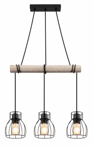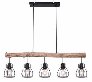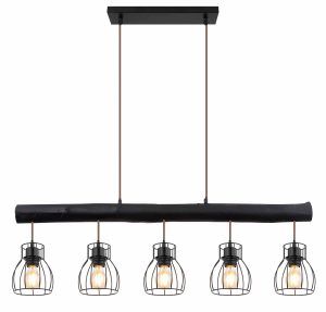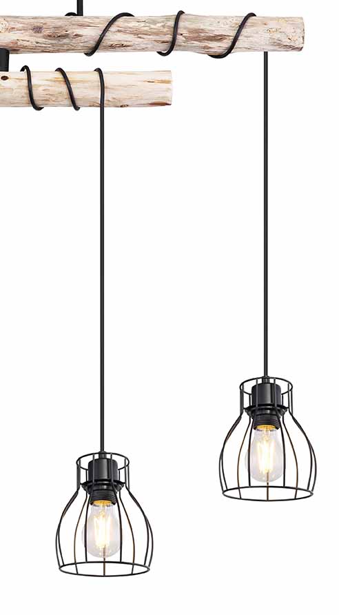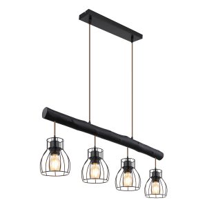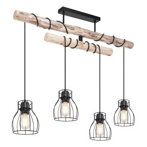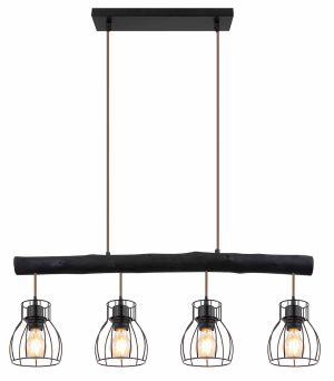Esta lámpara de techo MINA de metal negro impresiona en casi cualquier habitación. El brazo de la viga de madera es giratorio, lo que le permite dirigir la luz en cualquier ángulo deseado. En la viga de madera suspendida hay cuatro conexiones E27, rodeadas por una pantalla de lámpara redonda con un diseño de rejilla. Gracias a la libre elección de la fuente de luz (4 x E27/máx. 60W), puede determinar usted mismo la intensidad y el color de la luz. Se recomiendan bombillas LED. Combine con otros modelos de esta serie.