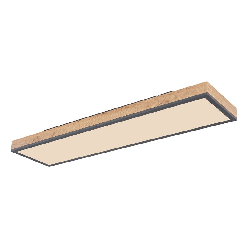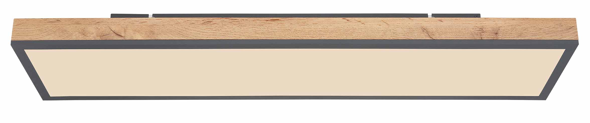 Descubre la versatilidad de la lámpara de techo Doro, que destaca con un marco rectangular de MDF con efecto madera combinado con aluminio en color grafito. Las lámparas LED integradas, envueltas en acrílico opalino, generan una intensa salida de luz de 1500 lúmenes. Esta lámpara tiene un control remoto que te permite no solo ajustar el brillo, sino también variar el color de la luz desde un blanco cálido de 2700 Kelvin hasta un blanco frío de 6000 Kelvin. También cuenta con una función adicional de luz nocturna. Esta lámpara de techo puede fusionarse sin problemas con otros modelos de la colección Doro, dando a tu espacio un conjunto estético estilizado y coherente.