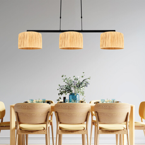 Lámpara de techo triple en negro con tulipas étnicas Steinhauer Stang naturel y negro