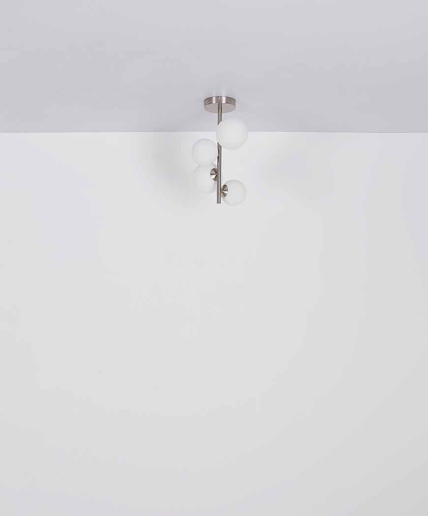 Lámpara de techo vertical 4 pantalla de cristal opal níquel Globo Riha