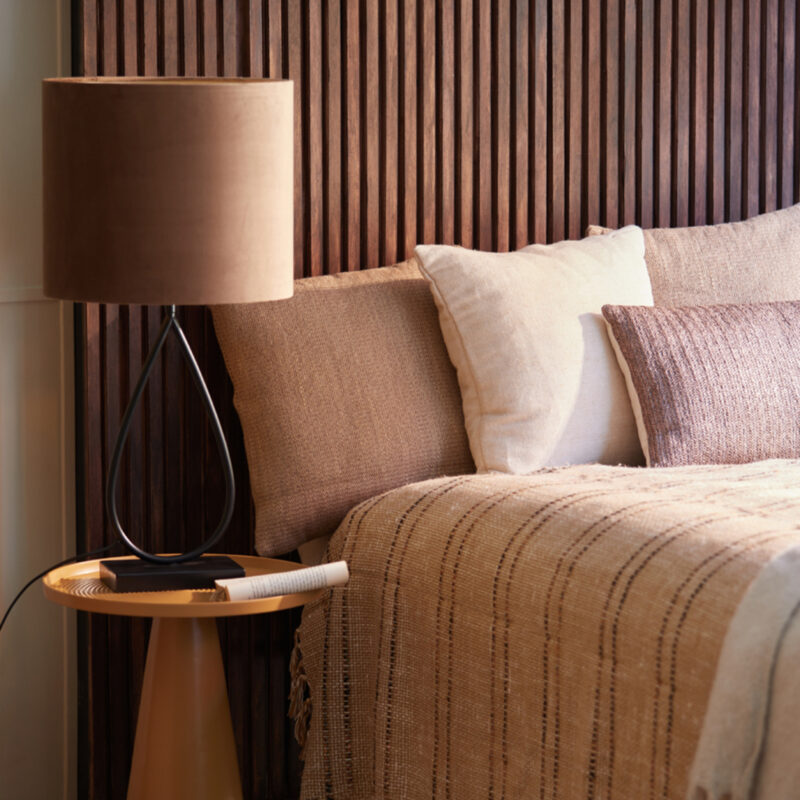 Lámpara de terciopelo marrón en forma de cilindro Light & Living Velours