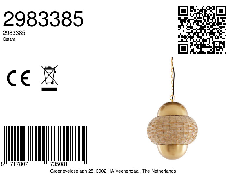 Esta lámpara de suspensión está equipada con un casquillo E27 (grandecito) y se entrega sin bombilla, lo que te permite elegir una opción de bajo consumo. La lámpara es regulable en intensidad, siempre que utilices una bombilla regulable y un regulador externo. Con una clase de protección IP20, esta lámpara está diseñada especialmente para uso en interiores. Además, disfrutas de un período de garantía de 2 años en este producto, lo que la hace aún más atractiva.