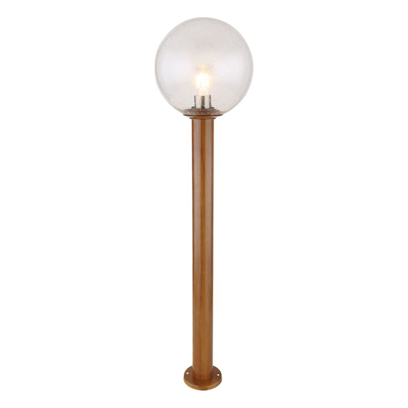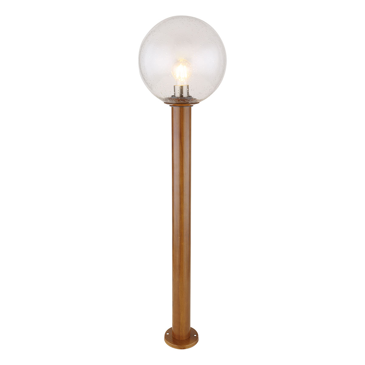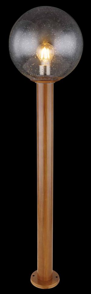 La serie Ossy presenta una lámpara de exterior con aspecto de madera que combina elegancia y funcionalidad, perfecta para añadir un toque estiloso a cualquier ambiente exterior. Esta lámpara de pie cilíndrica de Ø25cm y 100cm de altura, decorada con una atractiva pantalla de vidrio esférica con burbujas, protege el casquillo E27 LED de la lluvia. El casquillo es compatible con cualquier bombilla de su elección hasta un máximo de 15 vatios. El diseño único de madera de esta lámpara crea una impresionante imagen total, una adición decorativa atemporal a cualquier espacio exterior.