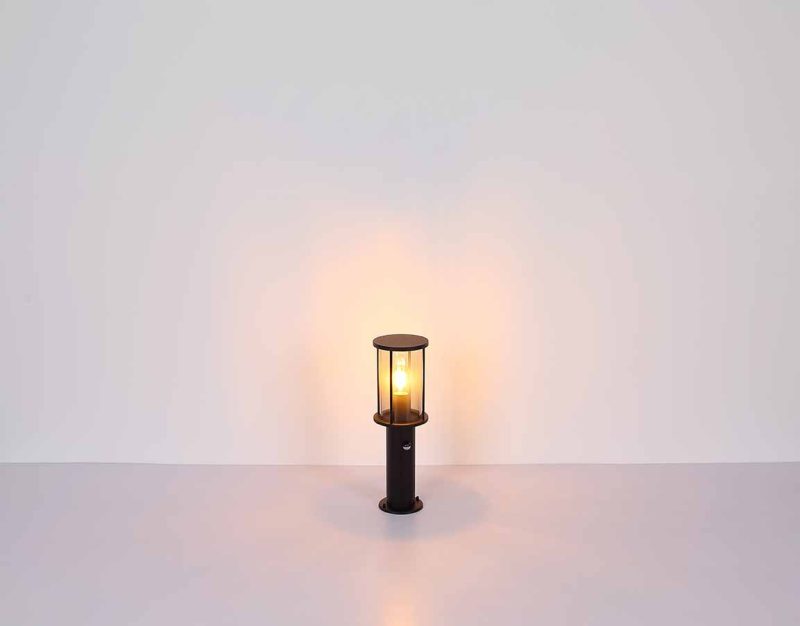 Da un toque elegante a tu entorno exterior con esta lámpara de exterior de la serie GRACEY, fabricada profesionalmente en acero inoxidable negro mate y equipada con una elegante pantalla de vidrio ahumado. Para mayor comodidad y seguridad, cuenta con un sensor integrado y tiene un grado de protección IP54. Esta iluminación exterior tiene unas dimensiones de ø143mm x H1000mm y requiere una bombilla E27, de un máximo de 60W y 230V, que debe adquirirse por separado. Debido al acabado sofisticado en negro mate, esta lámpara se integra perfectamente en cualquier jardín o patio.