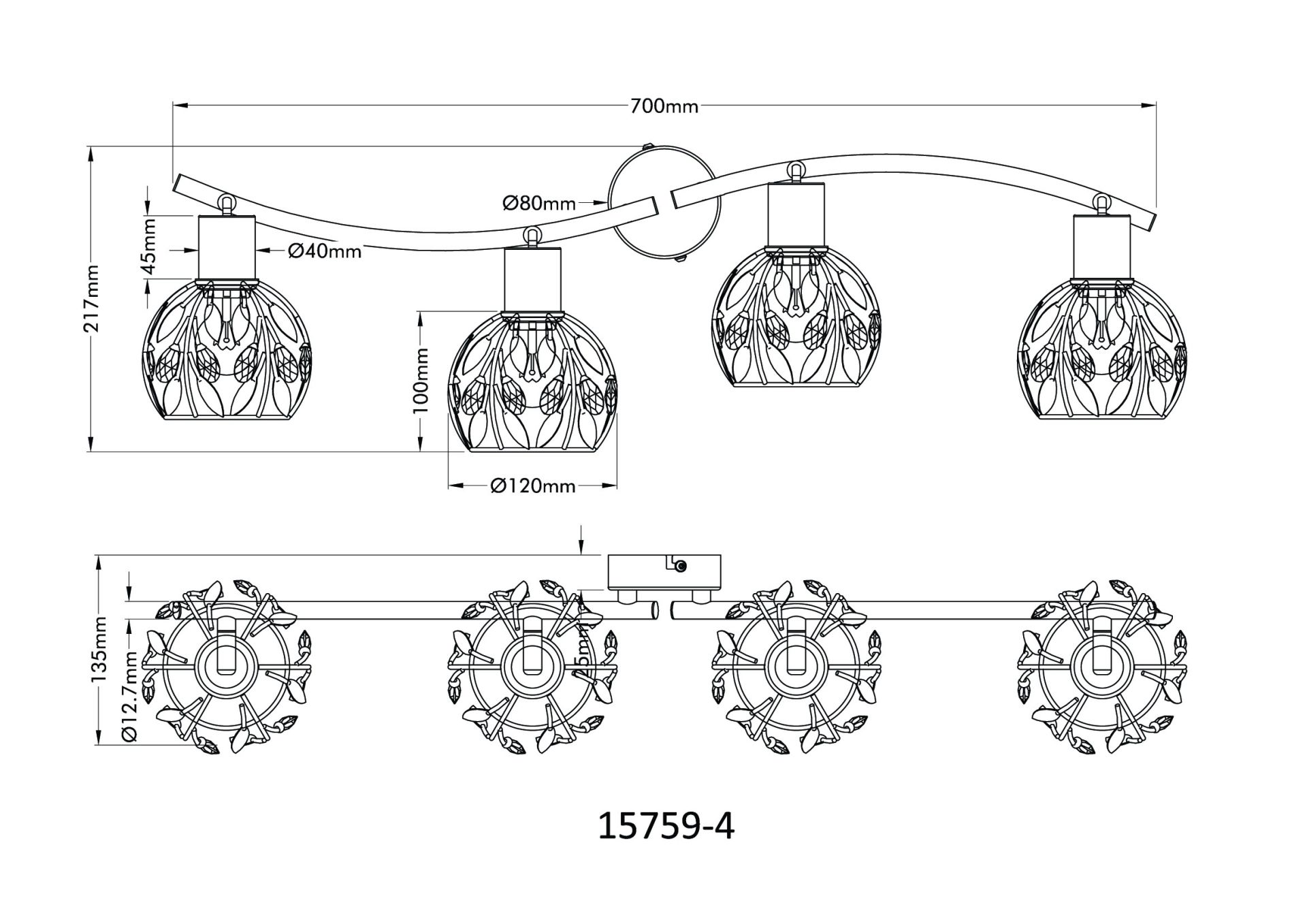 El foco Mika está equipado con cuatro casquillos E14, lo que le da la libertad de elegir las lámparas ideales y personalizar completamente su iluminación. Esta lámpara versátil es perfecta para su uso en salas de estar, oficinas o pasillos, y ofrece el equilibrio óptimo entre estética y funcionalidad. Con el foco Mika, no solo aporta luz, sino también encanto y estilo a su hogar.